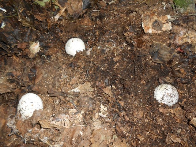нашли одно яйцо и сорвав, упаковали в майонезное ведёрко. Пошарив вокруг минут 10, нашли "гнездо" с ещё тремя яйцами...