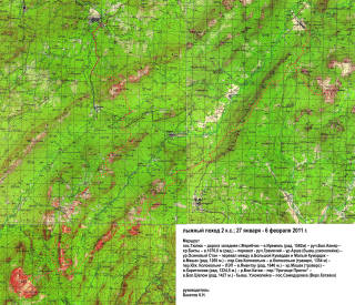 пос.Тюлюк – дорога западнее г.Жеребчик – в.Иремель (рад, 1582м) – руч.Бол.Авняр – хр.Бакты – в.1076,6 м (рад.) – перевал - руч.Гремячий – ур.Арша (бывш.узкоколейка) – ур.Осиновый Стан – перевал между в.Большой Кумардак и Малый Кумардак – в.Машак (рад, 1265 м.) – пер.Сев.Колокольня – в.Колокольня (траверс, 1354 м) – пер.Юж. Колокольня – ЛЭП – в.Ямантау (рад, 1640 м.) – хр.Машак (траверс) – в.Харитонова (рад, 1224,5 м.) – р.Бол.Катав – пер.”Урочище Прогон” – в.Бол.Шелом (рад, 1427 м.) - бывш. узкоколейка – пос.Самодуровка (Верх.Катавка) -
