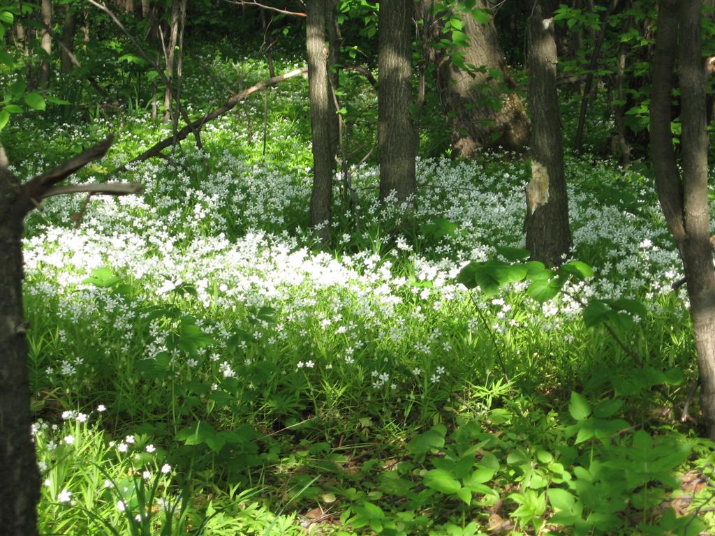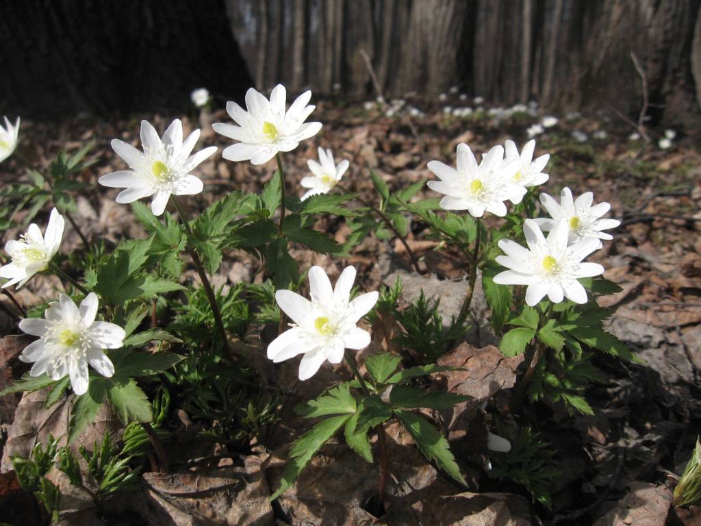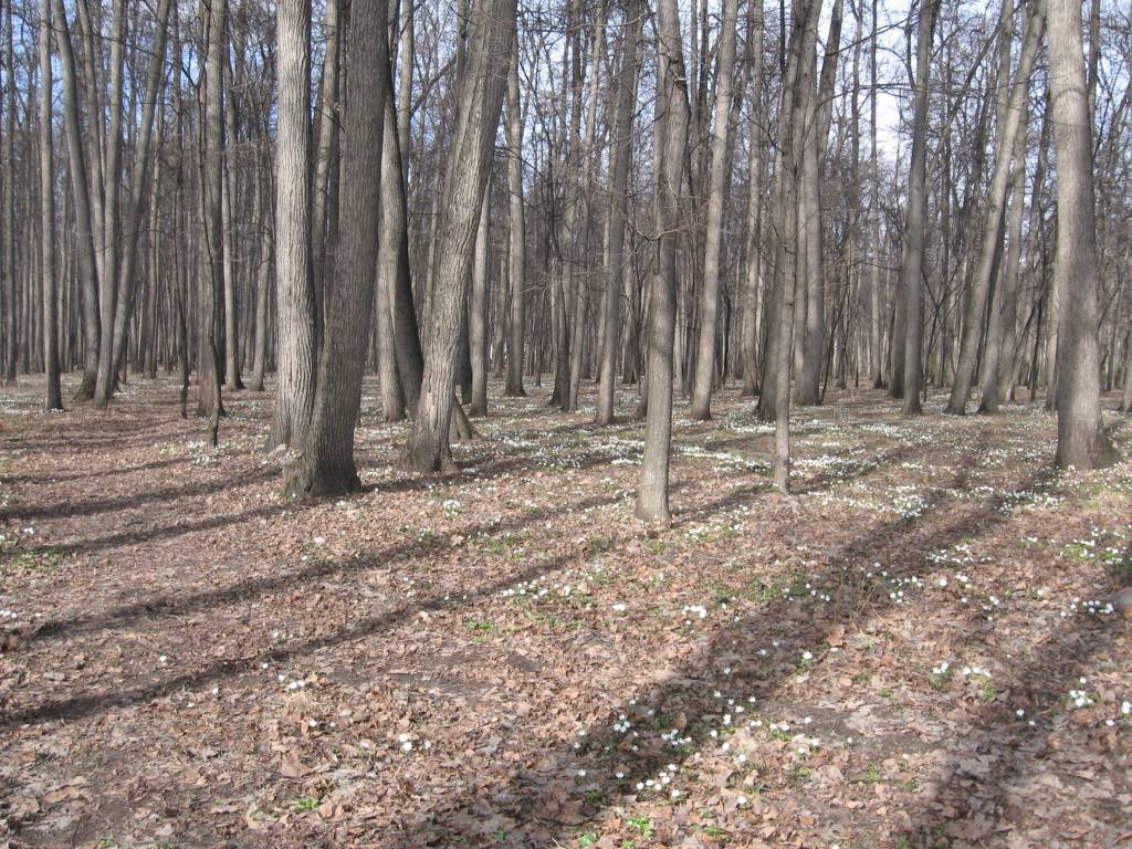 Весна, середина апреля, а поляны уже белые от подснежников.