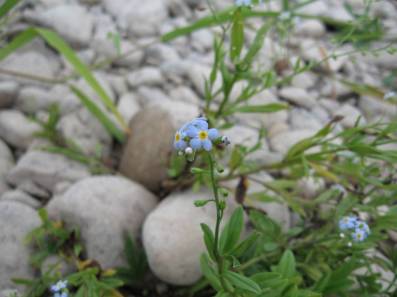 Островок горной речки был весь в нежных незабудках и еще какое-то непонятное растение из воды торчало.