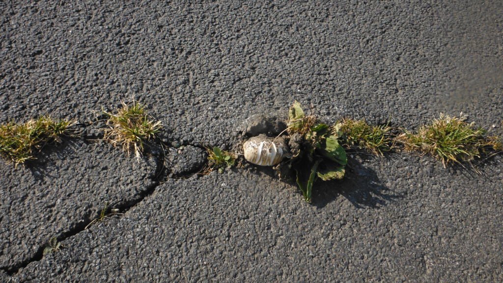 У нас грибы начали расти в асфальте. :)