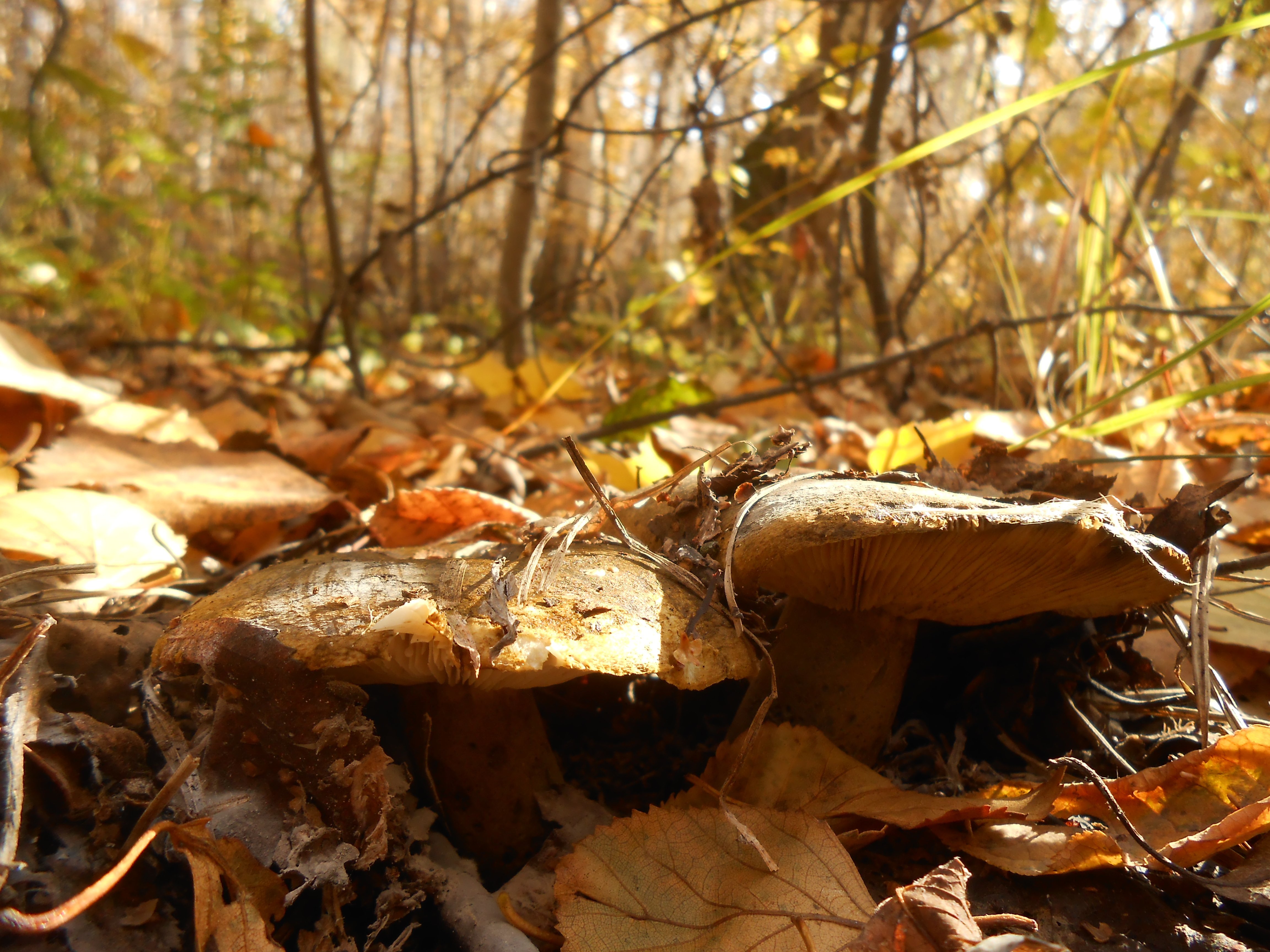 Осень началась, где-то  на северах Башкирии льют дожди, при чем такие, что аж с ураганом и деревни с лица земли сносят, а в Уфе мороз и солнце. Мы в эти выходные выехали за город, взяв с собой палатку и спальники и покатили в сторону Павловки. Надеялись, что там где-нибудь да прошли дожди. Но полевая дорога была сухая и пыльная, хотя в лесу было влажно. Грибы попадались штучно: старые лисички, молодые подберезовики, засохшие грузди.