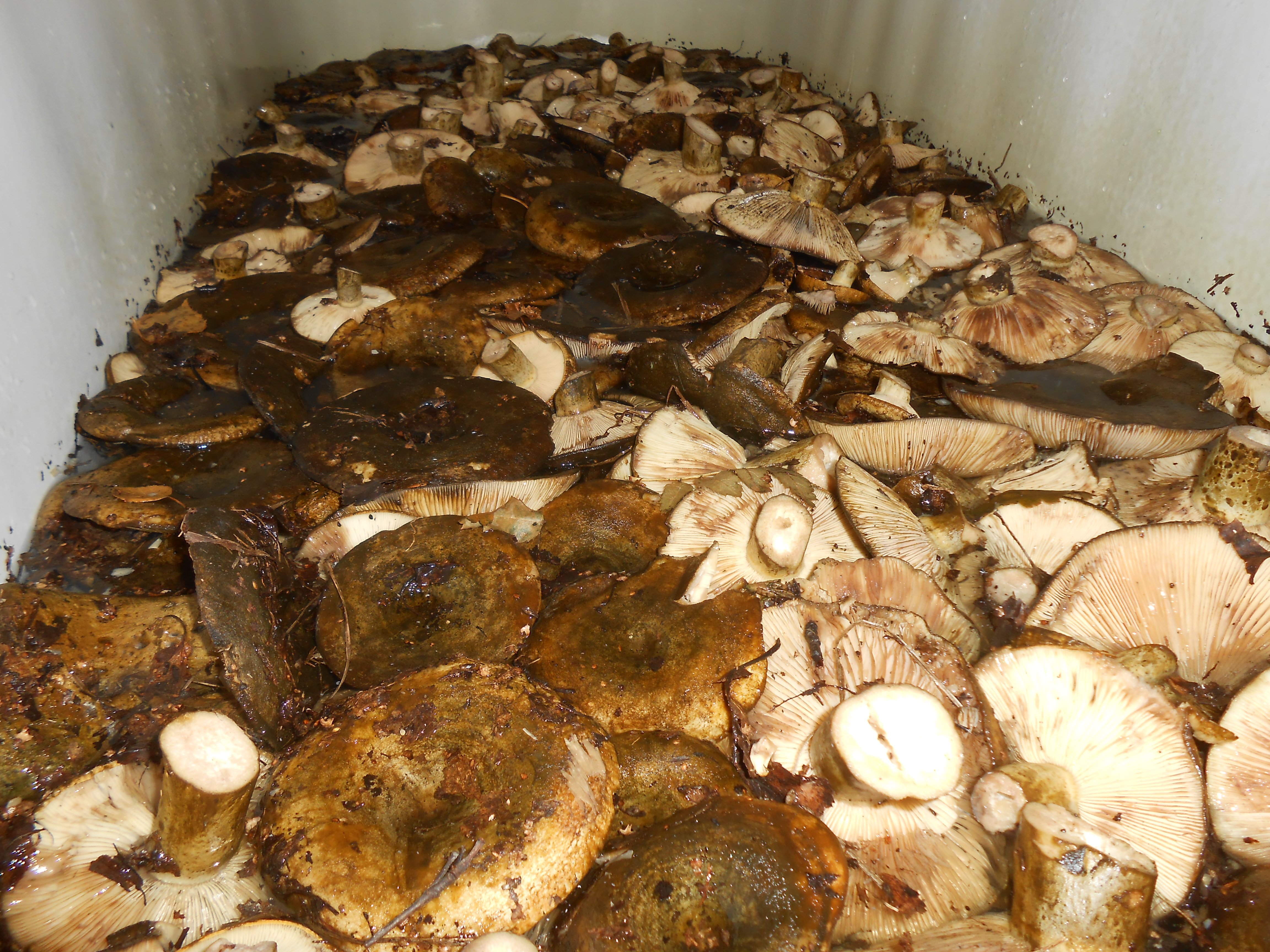 Ну точно пожадничали - только что закончили переработку. Получилось аж 8 3-литровых банок соленых осиновых груздей.