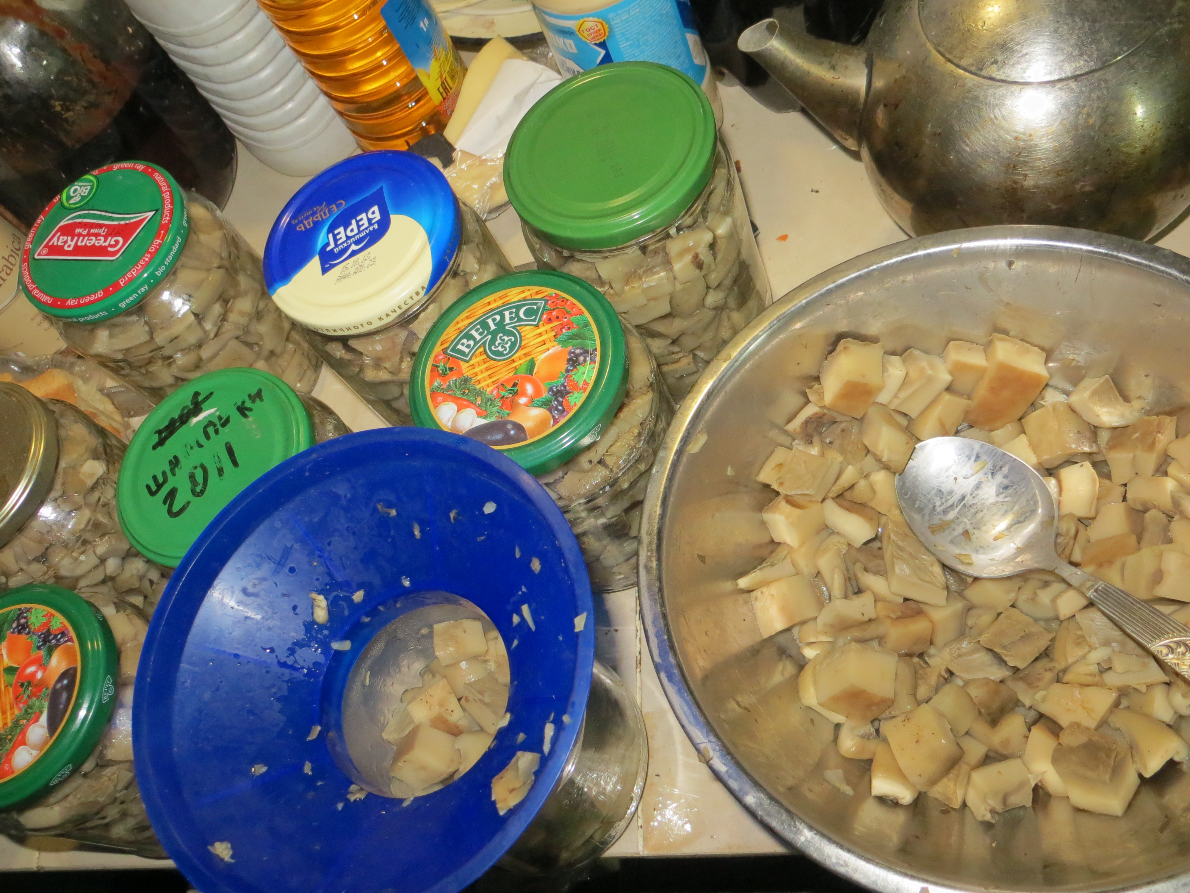 Так же вымачиваем, режем, жарим. Потом укладываем грибы в банки, закрываем крышки и помещаем в скороварку. Подробнее о приготовлении.