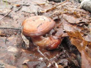 В поездке на Лемезу повстречали в тех местах алеврию оранжевую - яркий, красивый грибочек, но на вкус никакой. Съедобен, но безвкусен и резиноват. Так что остается покрасоваться его такой необычно яркой чашечкой и пофотографировать на память.
