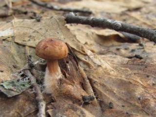 Похоже на какую-то из рядовок (Tricholoma), пока найти что это конкретно не удалось. А мохнатость, может паразитическая плесень? Что-то похожее встречается часто на волнушках белых.