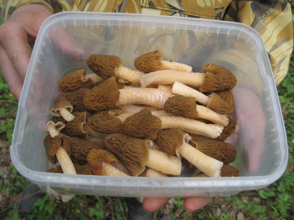 По дороге из Начапкино ехали через Дему, и проезжая мимо какого-то магазина случайно увидели три полные карзины сморчков! Не могли не остановиться. Побеседовали. Поитересовались, что как, где откуда. Тетя говорит, что в наших местах нет, и езлдили за Буздяк - ходили по лесу шесть часов, набрали четыре корзины сморчков и ведро клещей. Не удержались, и купили одну корзинку, вышло ровно 6 кг.
