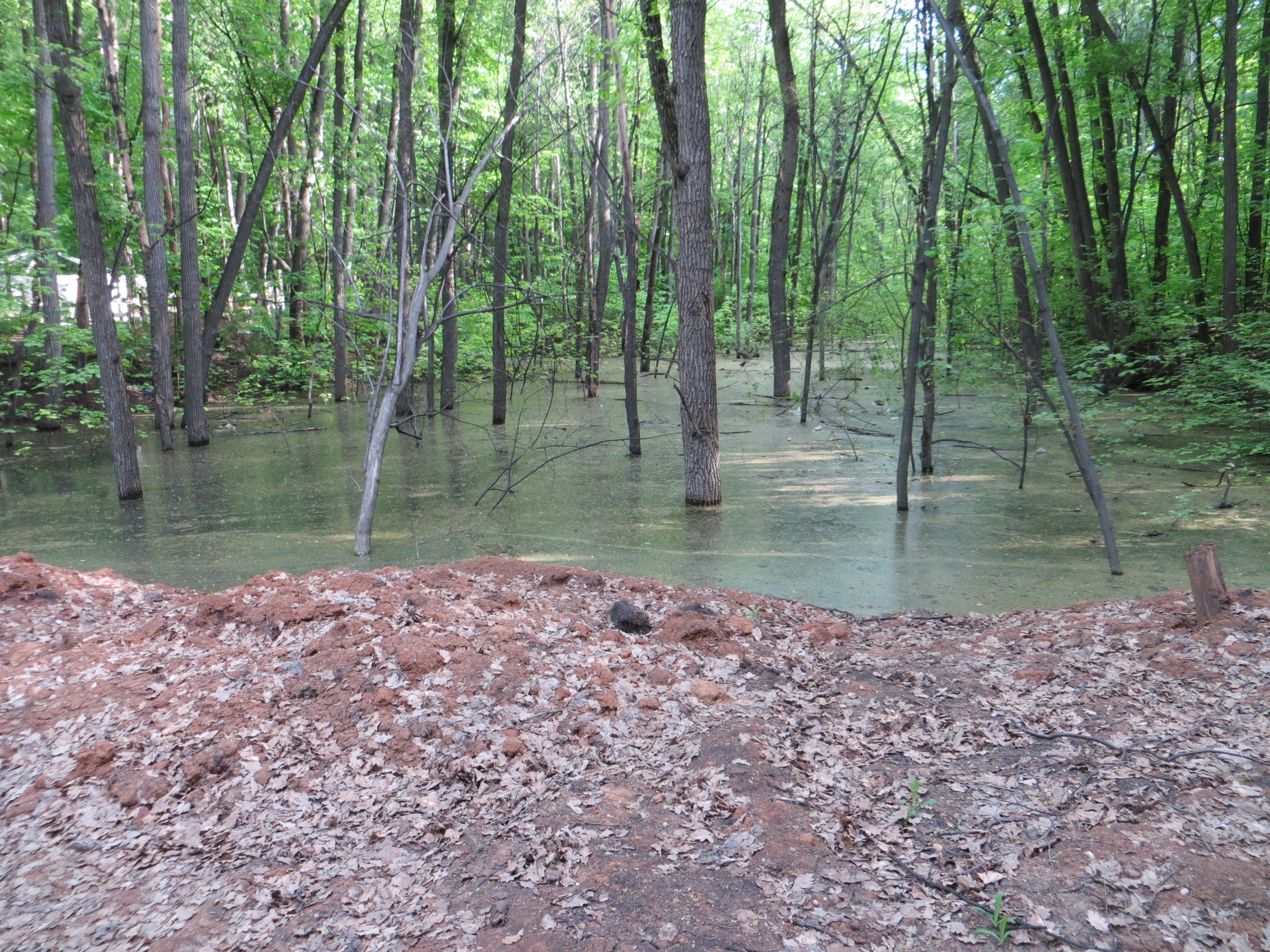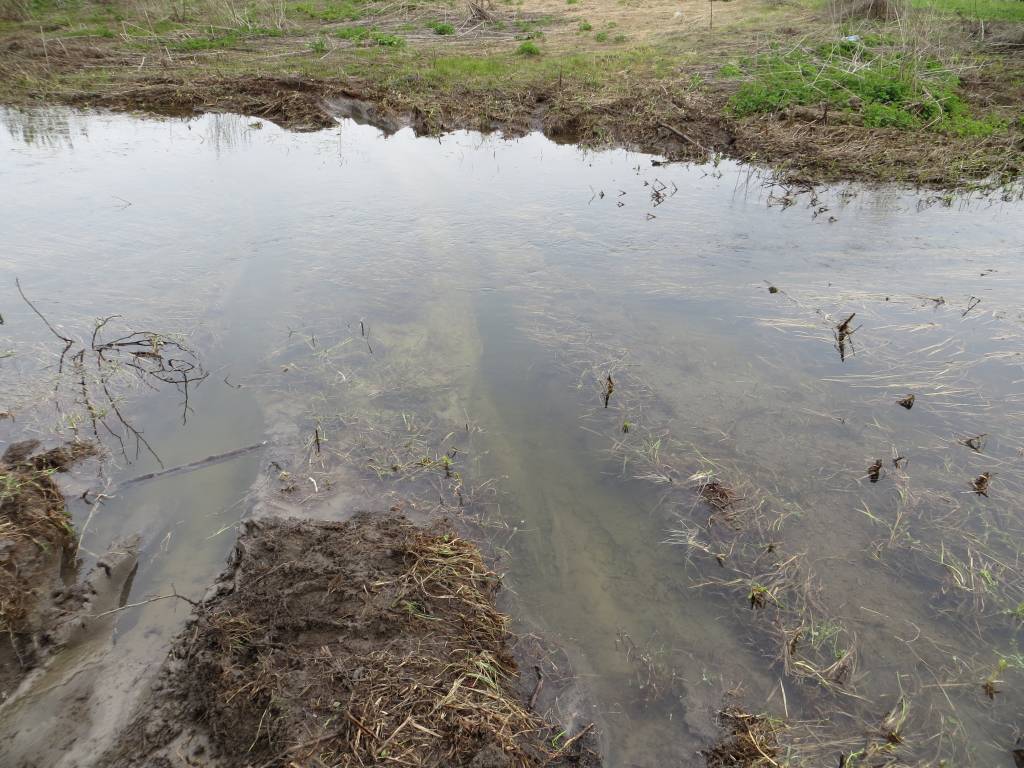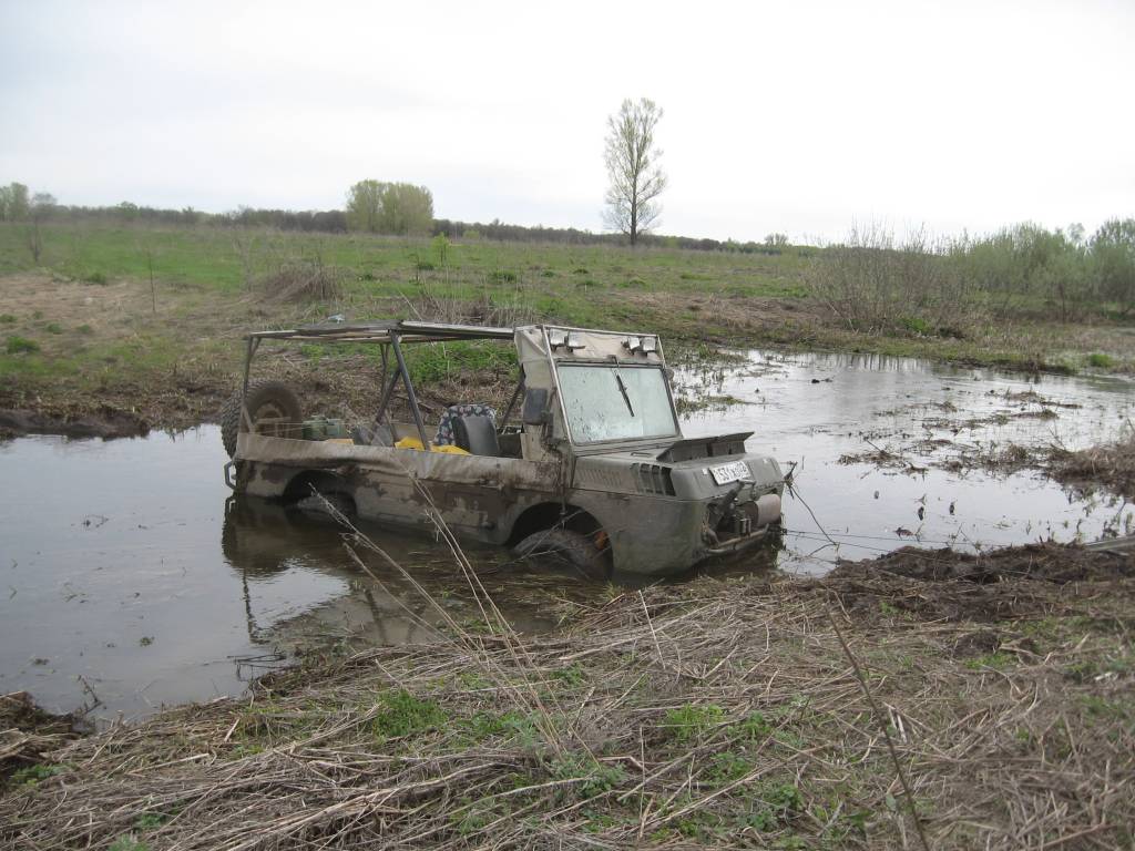 Из Вотикеевского пруда вытекал ручеек, через которой мы пытались переехать, благо вроде и следы в речку входят и выходят тоже, только вот пошли мы не тем путем (метров на 10 бочнее), ну и застряли.