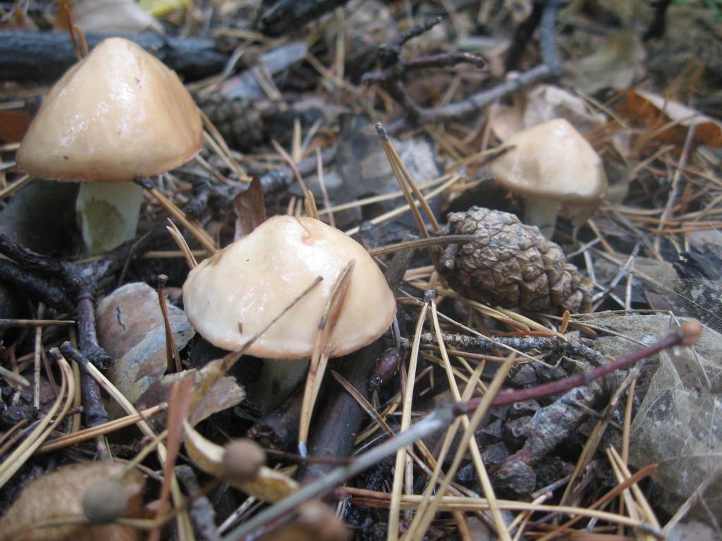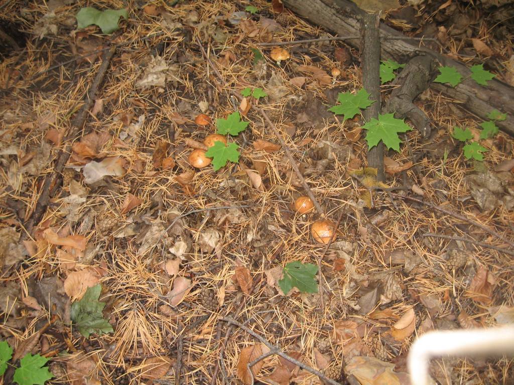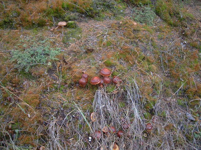 Поехали в еловый лесок смотреть, как себя маслята там чувствуют. Маслятам хорошо на опушке - свежо, уютно во мху, только шляпки блестящие проглядывают. Но их немного, они только-только начинают вылупляться. Ну что ж, навестим вас через недельку :).