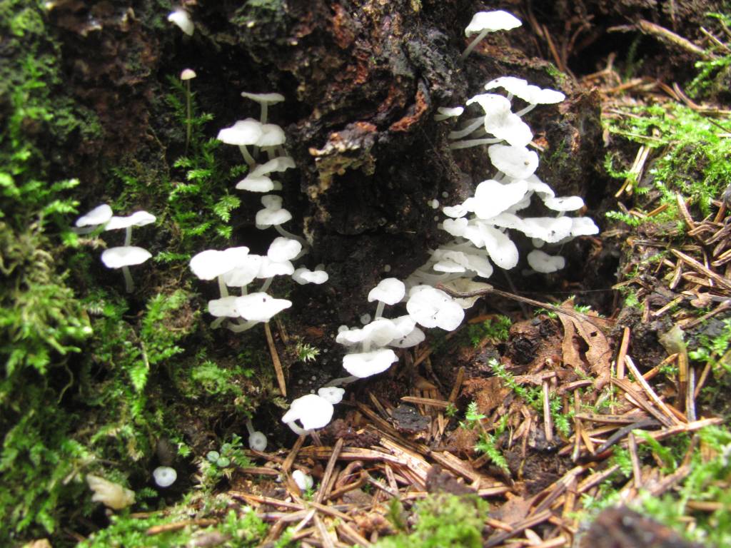 "Грибы на переднем плане" настолько миллипусерны и тщедушны, что интереса как ГРИБЫ не представляют, а потому проходят по всем практическим классификаторам как "поганки мелкие" Коллибии с чесночниками и то туда обычно относят, но они ж не впример крупнее