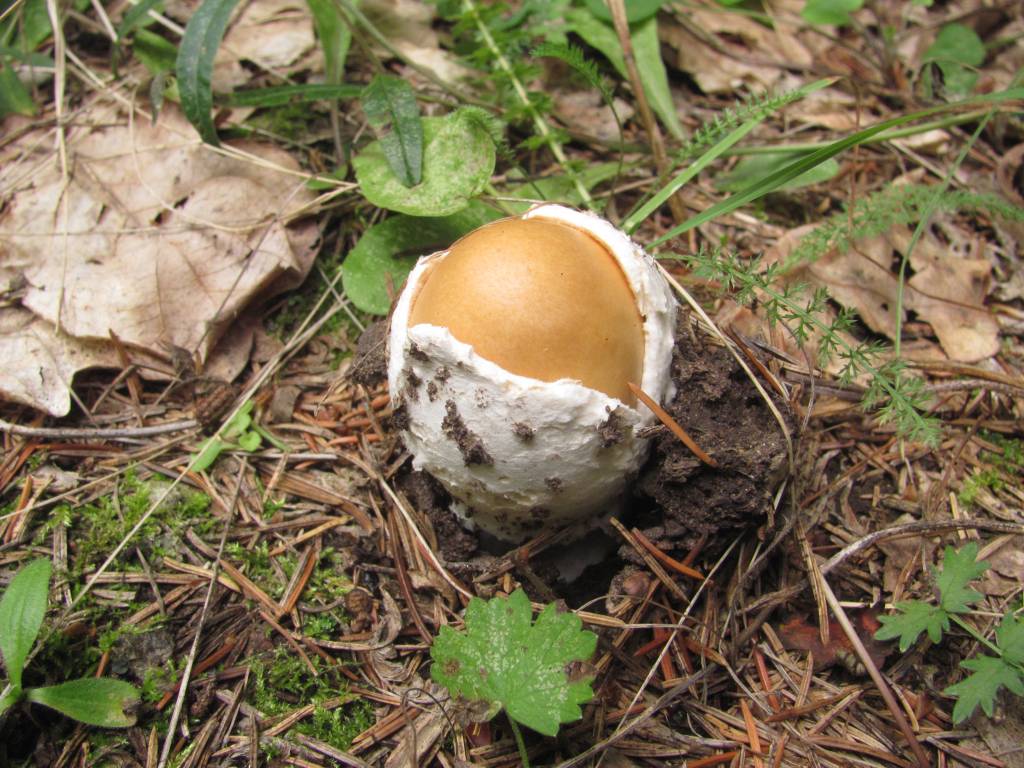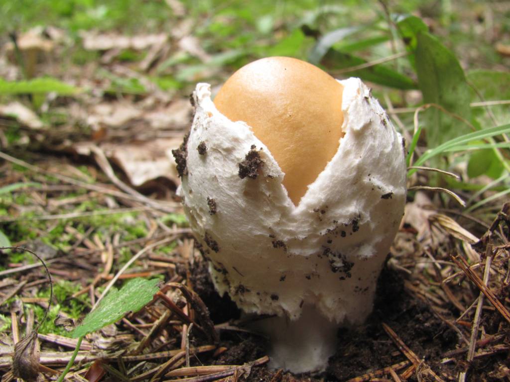 Рождение одного из мухоморов, скорее всего пантерного. Разрез бы дал детали.