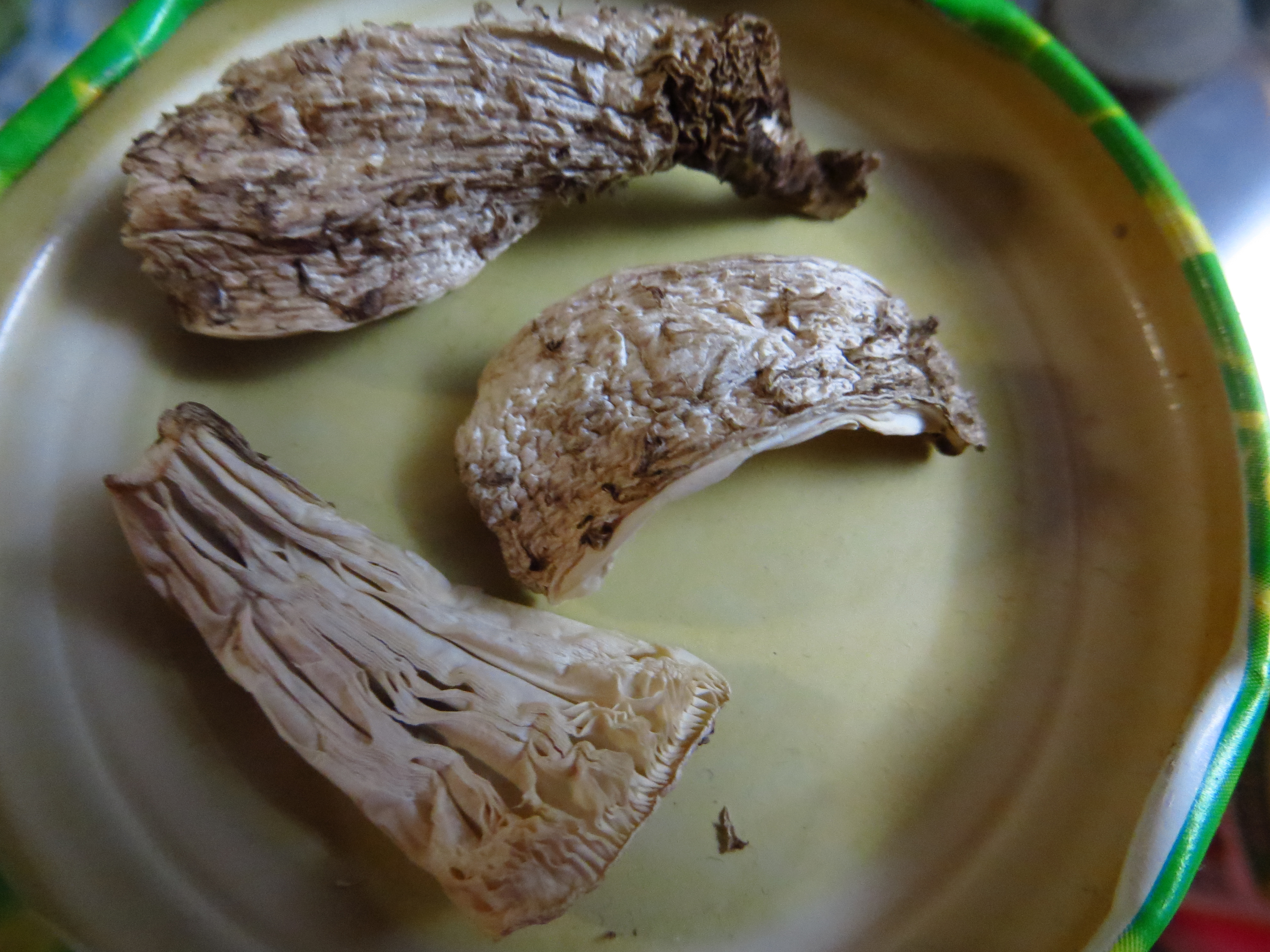 Немножко фотографий, где помимо всего можно также и увидеть, как меняют цвет при сушке различные грибы: светло-желтые польские - так и остались светло-желтыми, синюшные дубовики - преобрели приятный коричневый цвет, а хваленые белые - после высыхания стали темно-серыми. Зонтики, пеструшки, дождевики так и остаются оригинального цвета. У шампиньонов мякоть сохраняет цвет, но чернеют пластинки.