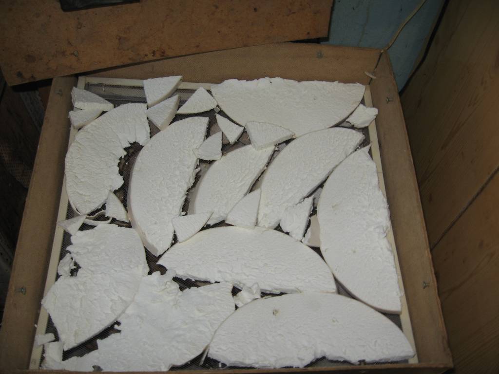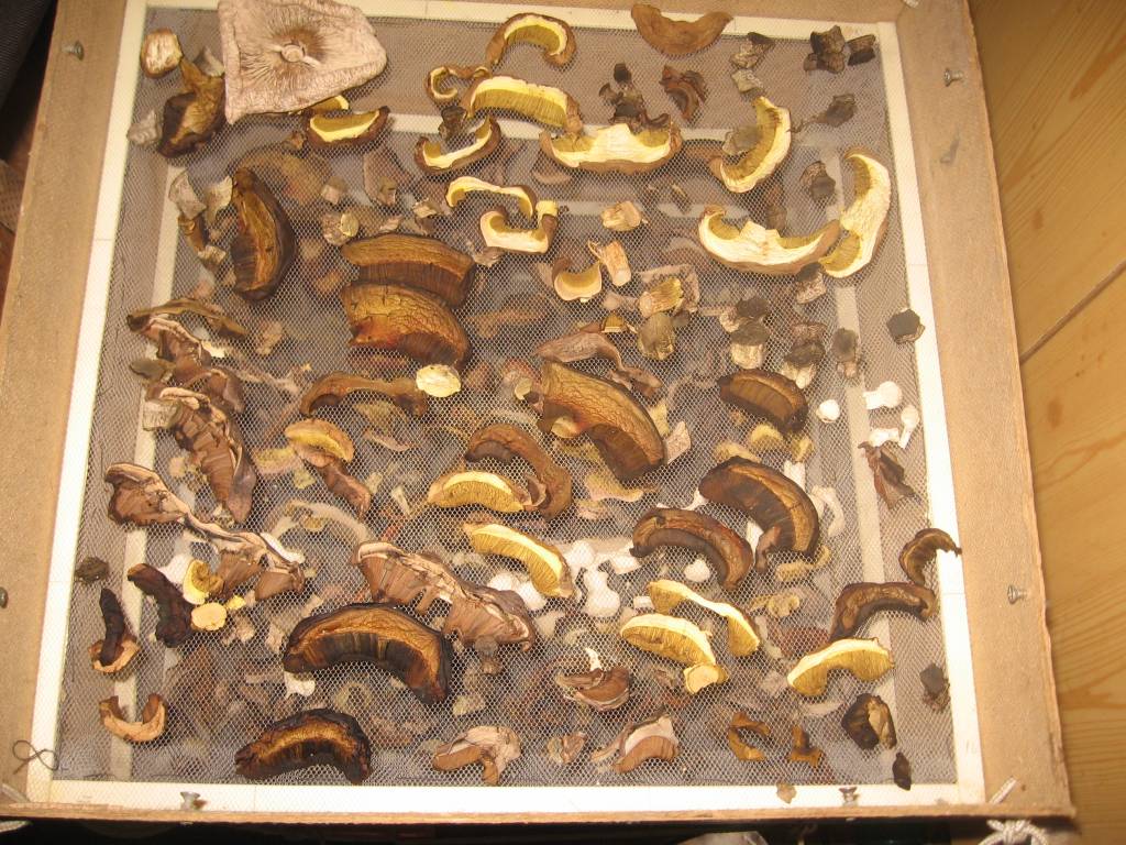 Сушка - одна из древнейших заготовок грибов впрок. Для сушки годятся практически любые трубчатые грибы - белые, подосиновики, подберезовики, польские грибы, дубовики, моховики, козляки и другие. Исключением являются маслята - они при сушке твердеют как камушки, так что их размолоть очень трудно, а размочить не реально. Из трутовиков сушат трутовик пестрый, из пластинчатых подходят шампиньоны, грибы-зонтики, также сушат опята и лисички. В нашей сушилке (о которой поговорим чуть позже) еще можно сушить дождевики, которые в обычных условиях не сохнут, а зреют и становятся непригодными к употреблению. Также мы пробовали сушить рыжики и красные грузди, получается жестко, но после размола получившаяся грибная мука придает блюдам очень вкусный вкус
