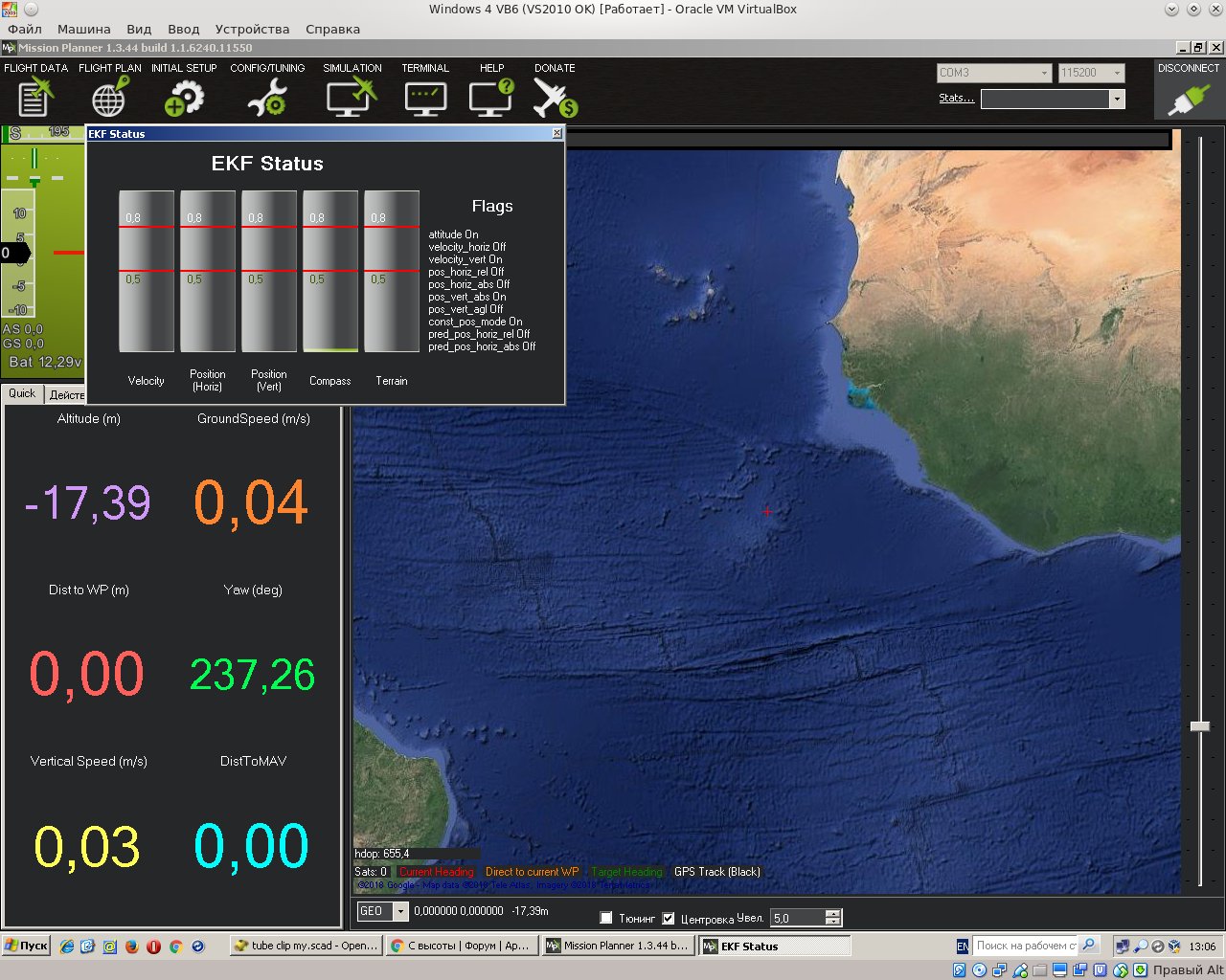 А у меня bad baro health нету. У меня просто высота плывет. Причем периодически в полёте синхронно глюкам высоты выскакивает EKF imu0 stop aiding. Потом видимо опять берет в работу и снова stop aiding. И так в цикле.