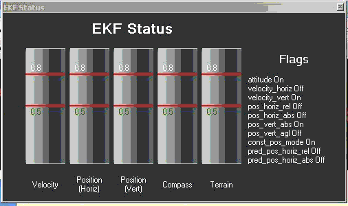 Открываю окошко состояние EKF (чтобы перед глазами). Захожу в вкладку МП DataFlash Logs, Download DataFlash Log Via Mavlink. Пока ничего не делаю, EKF сразу уходит в оранжевое, POS Vertical, показания высоты скачком в район 6 М. Потом потихоньку высота возвращается к близко ноль/минус, EKF зеленеет.