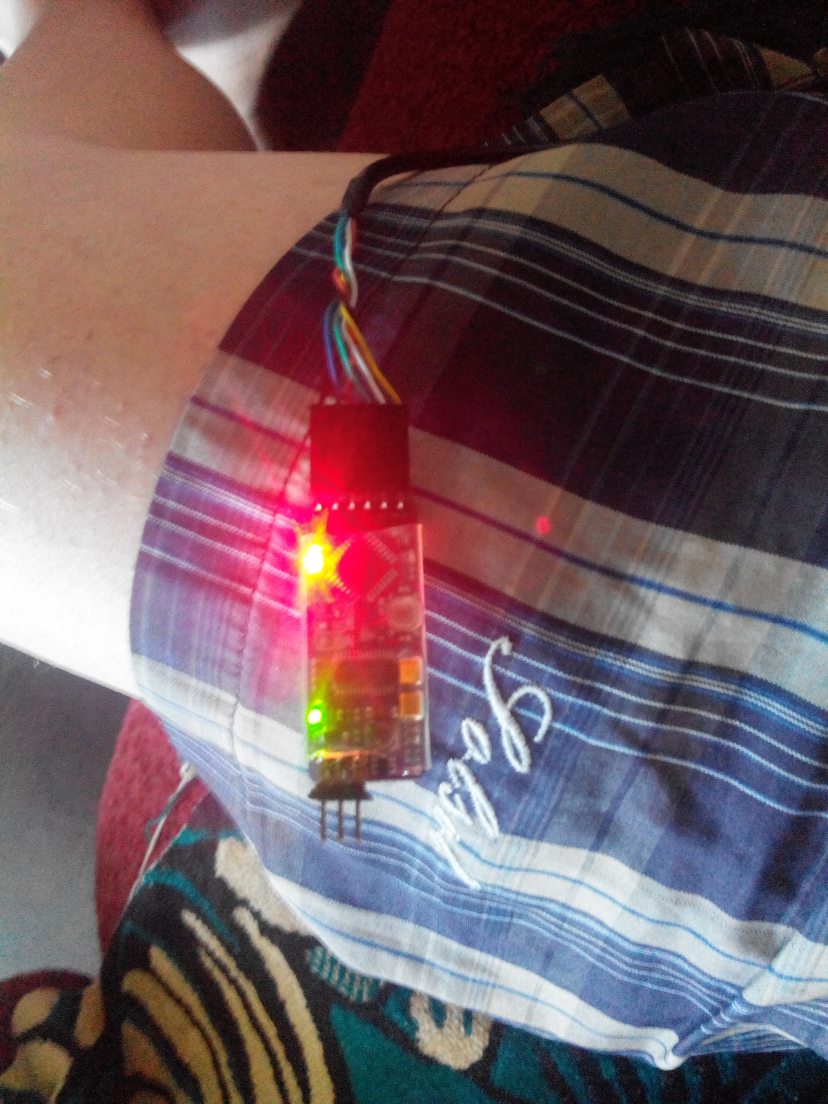 И всё же про перемычки: Перемычек вообще-то две - по земле и по +5В. Лампочки наличия питания на обоих половинах обычно одинакового цвета, а лампочка передачи данных - другого. В штатном варианте гореть должнго три лампочки. Может горит лампочка питания цифровой части и лампочка передачи данных, а питания на второй половине при прошивке нет? На самолёте может прекрасно работать, если на нём вторая половина питается от видеоканала через модуль питания второй половины ОСД.