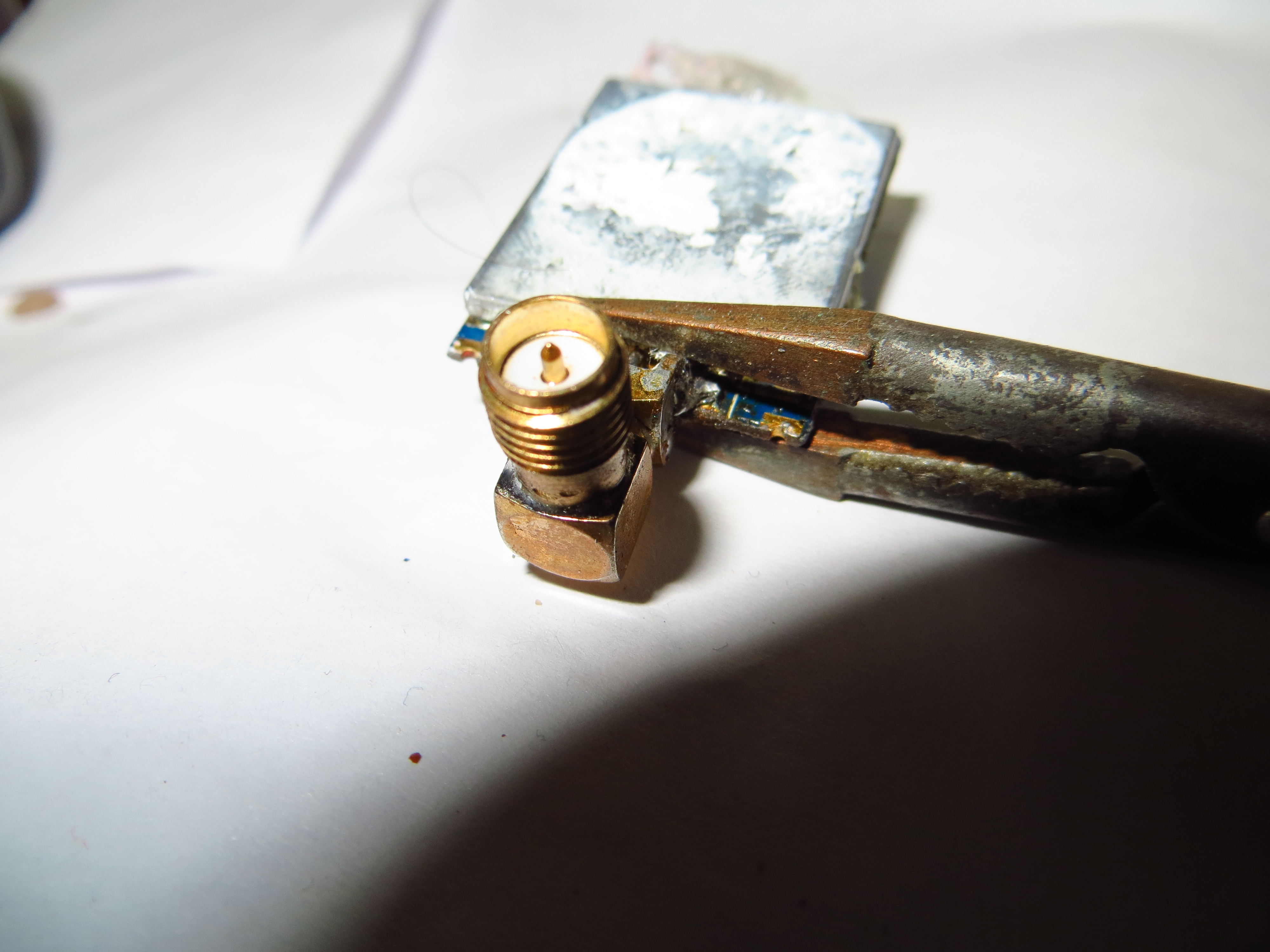 Вот это да! Разъем-то оказывается не цельный а сборный, и антенна держится только за счет запрессовки пояска шириной ~1мм! Естественно вибрация здоровенного "гриба" антенны его расшатала до полного саморазбора разъема... Ладно не в воздухе!