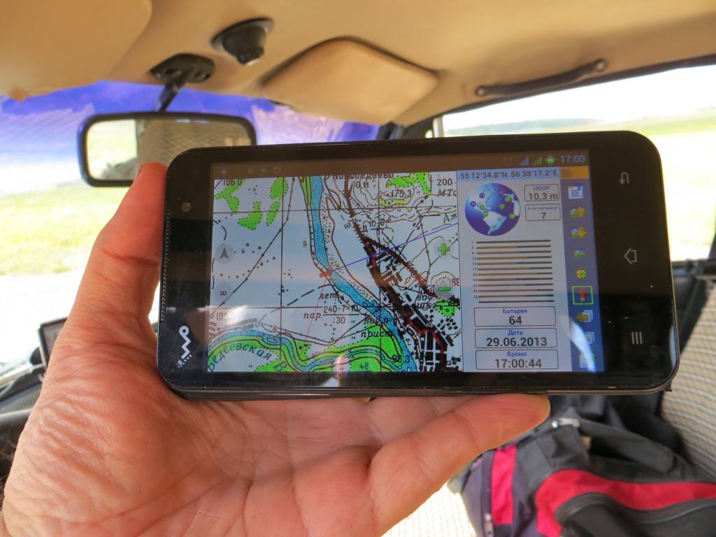 Навигатор и телефон. Версии софта немного разные, на навигаторе к тому же включен маршрут - но точку оба нашли в одном месте :) Середина реки - баг Навителовских карт, на Ози-то все правильно.