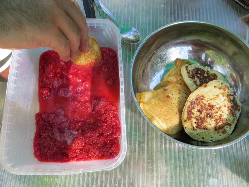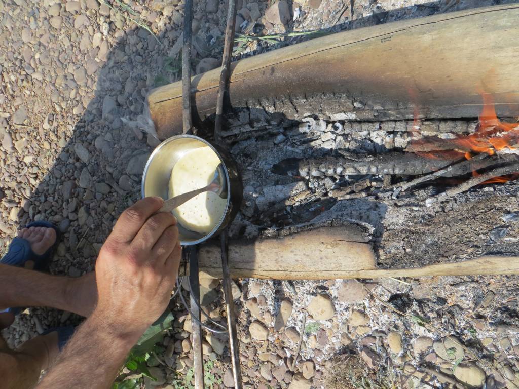 Дальше идет уже рецепт. Вино. Многие скажут, что вино может быть только сухим, будут правы, но горячее сухое – мерзость. Вы можете его подсластить сахаром, но возьмите уж лучше сразу полусладкое – хванчкара, медвежья кровь, кагор в конце концов, но рекомендую болгарскую кадарку. Вино нагревается до 60-65 градусов цельсия. Выше не надо – спирт испарится. Коль скоро варенье производится на костре, то температуру можно регулировать пальцем, либо пока не появятся первые пузырьки на поверхности вина. Добавляем специи. На 3 литра: корицу (палочку либо щепотку если порошок), гвоздику штук 10, мускатный орех (щипотку), сухофрукты (ну которые для компота – горсть), апельсинные, мандариновые или лимонные корки сушеные (штуки 3, не больше) и помешать. А вот теперь таинство. Ставим над вином решетку и выстраиваем на ней пирамидку из сахара-рафинада, поливаем спиртом (у каждого туриста он есть) и поджигаем. Карамелизация едреныть. Жженка капает с характерным звуком в горячее вино, а вы, по возможности, помешиваете, приговаривая определенные мантры (какие, сказать не могу, секрет). Пару раз спирта придется на сахар подлить. Карамель придает напитку незабываемый букет и послевкусие. Жаль, но часть спирта из вина в процессе приготовления у вас выпарилась. Не беда! У вас есть спирт (водка, коньяк)! Приготовленный напиток следует закрепить. Из личного опыта даю пропорции: на 3 литра вина требуется 50 гр чистого спирта, либо 100 гр коньяка или водки. Коньяк, как закрепитель, придает дополнительные вкусовые оттенки, которые нравятся дамам. Вот, ваш напиток готов. Теперь черпайте его алюминиевыми или пластмассовыми кружками и пейте пока не остыл. Можно даже детям с чайной ложечки. Эффект после усталости и бани можете описать ниже. Я называю эти ощущения как «спонтанные и многочисленные оргазмы»…