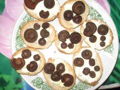 Когда они все готовы, вы берете несколько корок обыкновенной французской булки и натираете их головкой чесноку. На десять фунтов сморчков надо, по вкусу, израсходовать от одной до двух головок чесноку. Когда, наконец, и это вы сделаете, вы вымазываете дно и бока горшка сливочным же маслом и слегка посыпаете их толчеными сухарями.