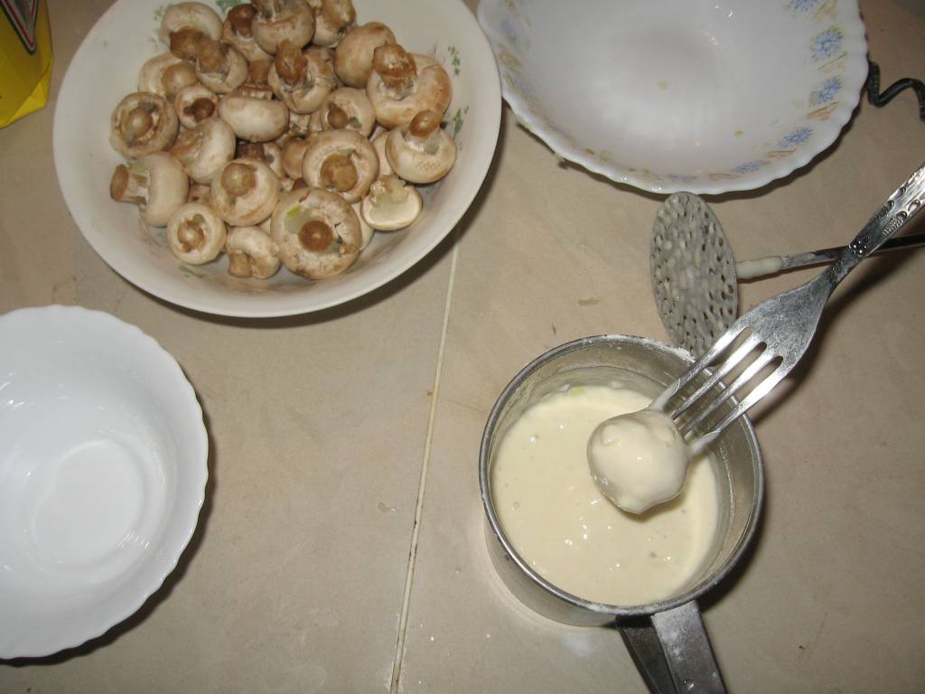 Когда они все готовы, вы берете несколько корок обыкновенной французской булки и натираете их головкой чесноку. На десять фунтов сморчков надо, по вкусу, израсходовать от одной до двух головок чесноку. Когда, наконец, и это вы сделаете, вы вымазываете дно и бока горшка сливочным же маслом и слегка посыпаете их толчеными сухарями.