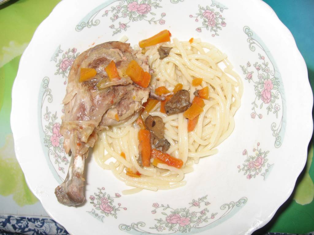 готовое блюдоТак как куроноги жирные, то мы тушим их на решетке, чтоб жир стекал на дно, а не пропитывал мясо.