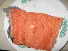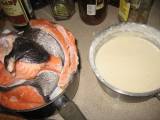 Отделили реберную часть рыбы. Сделали тесто для кляра: 1 яйцо взбитое с полстаканом молока. Добавили соль и муку. Обваляли мясо рыбы в тесте и отправили на прогретую сковороду. Две минуты с двух сторон и готово!