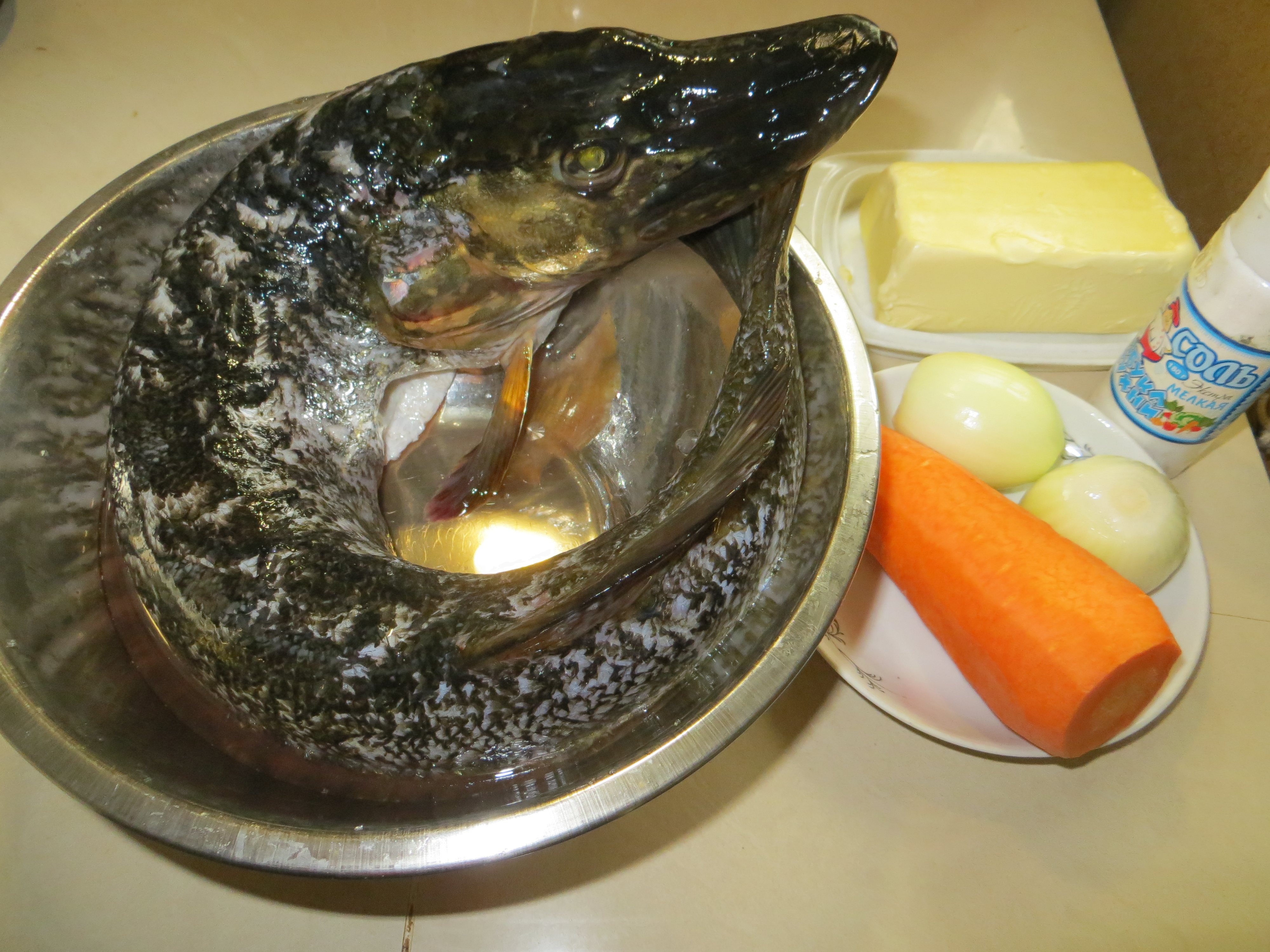 Притащили мы этого рыбасика домой, почистили, а щука еще и с сюрпризом оказалась - с икрой! Икра, как пишут знающие люди, не уступает красной, но о ней я расскажу, когда попробуем сами.