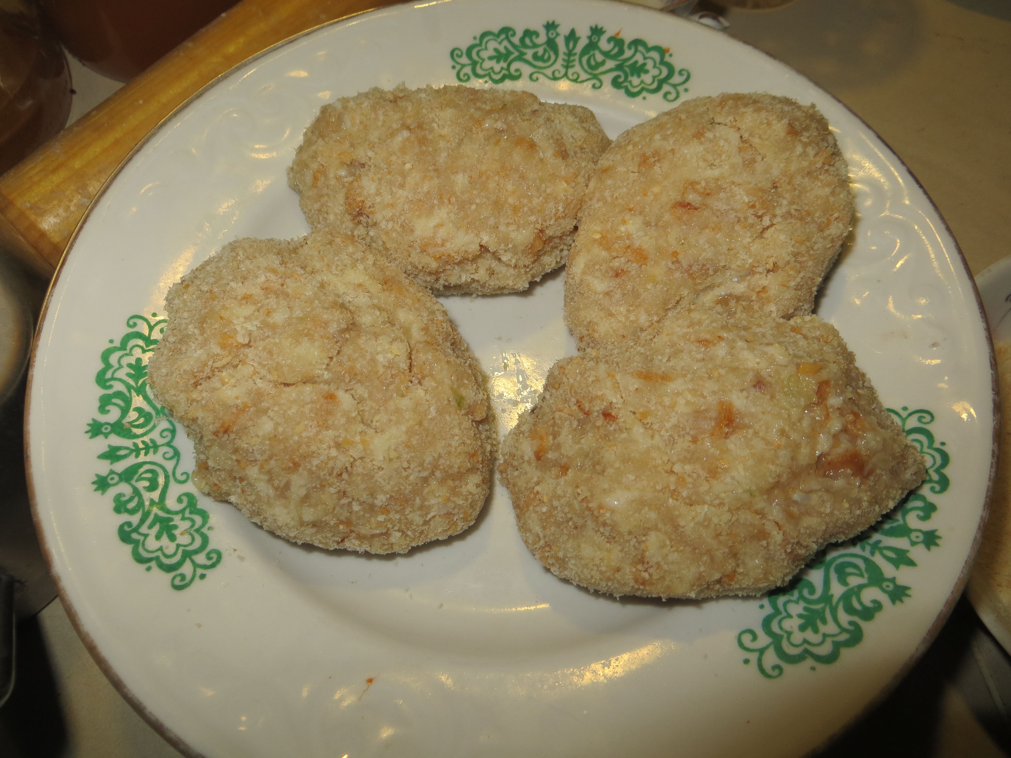 Из фарша слепить котлетки, обвалять в панировочных сухарях.
