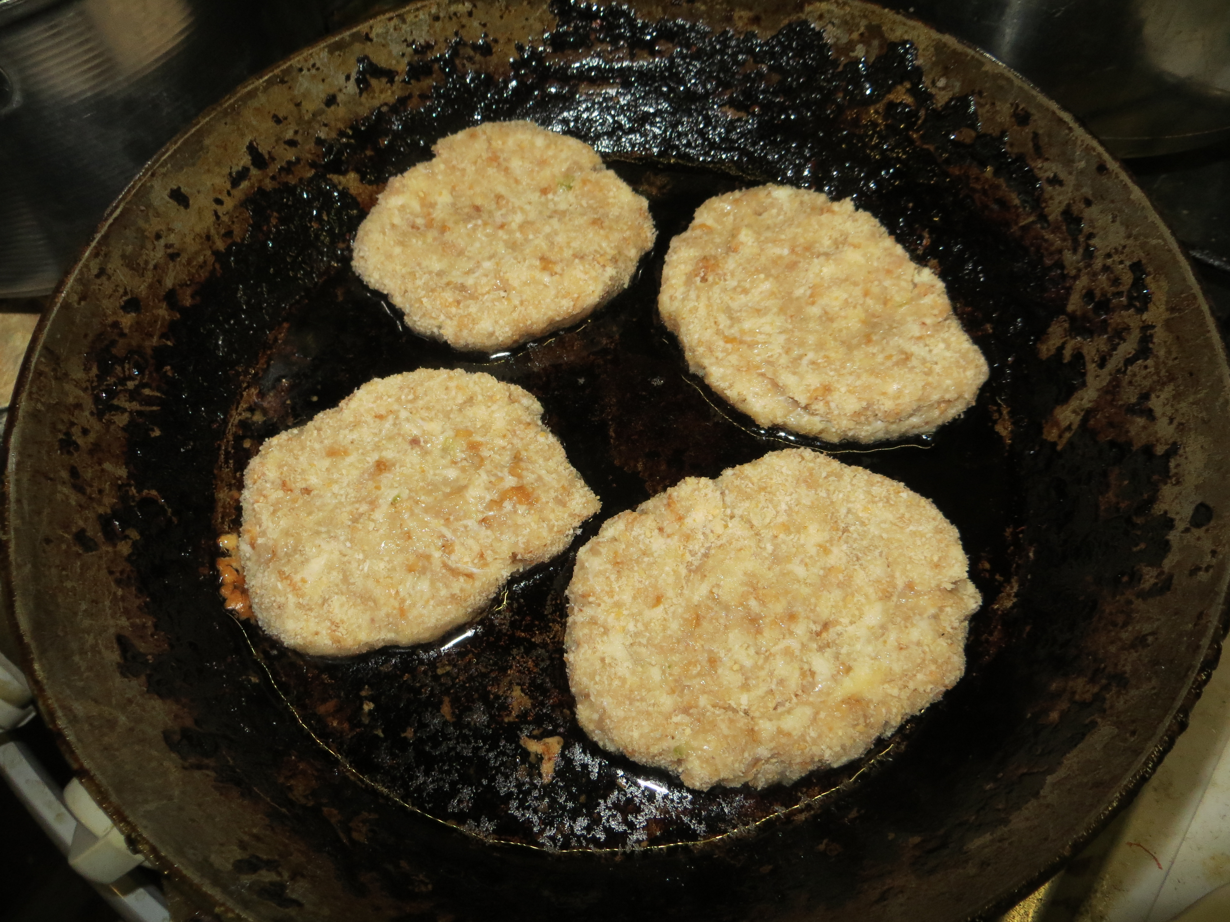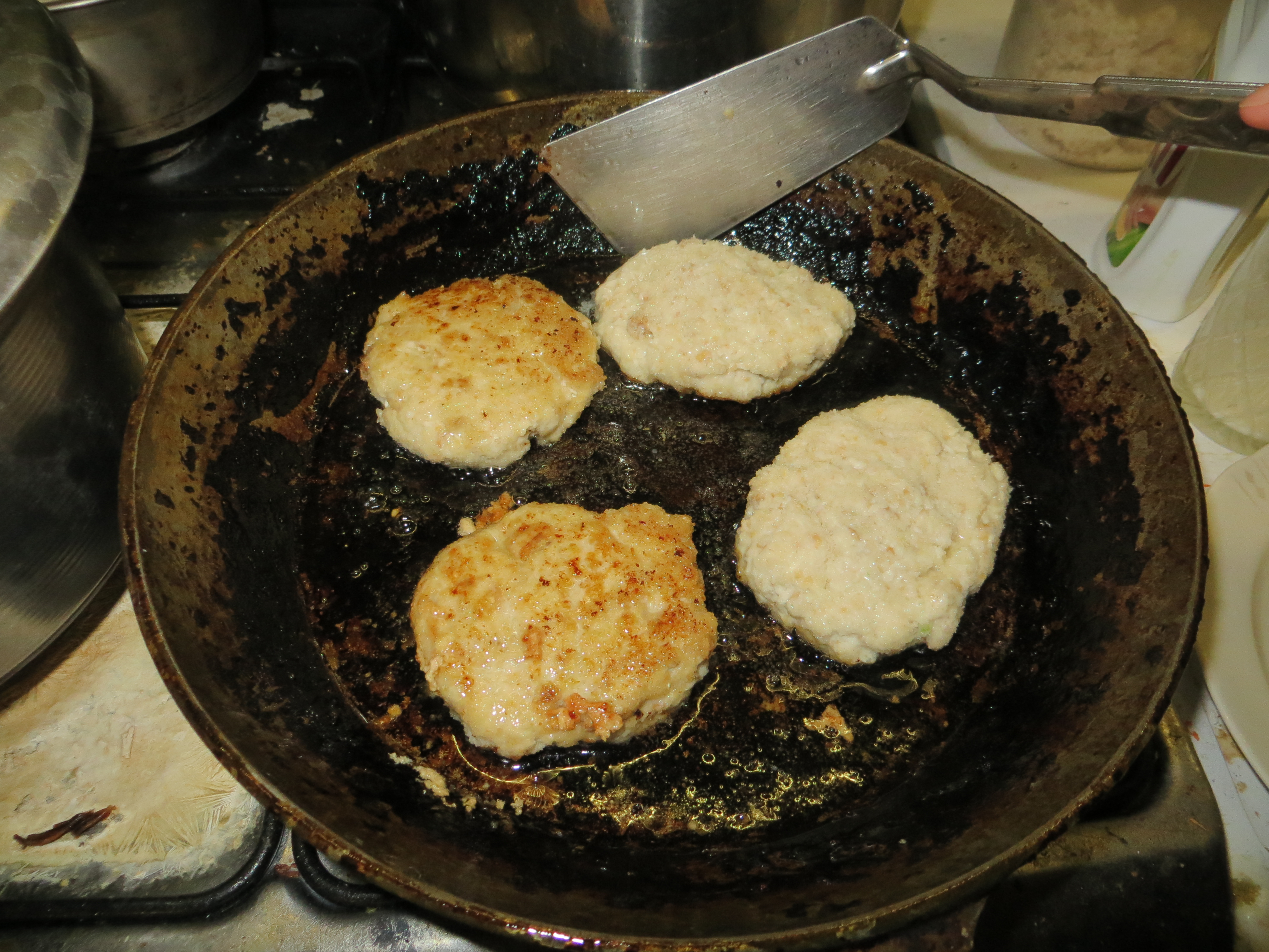 И на горячую, шипучую маслом сковородку котлетки укладываем. По пять минут каждой стороны обжарить.