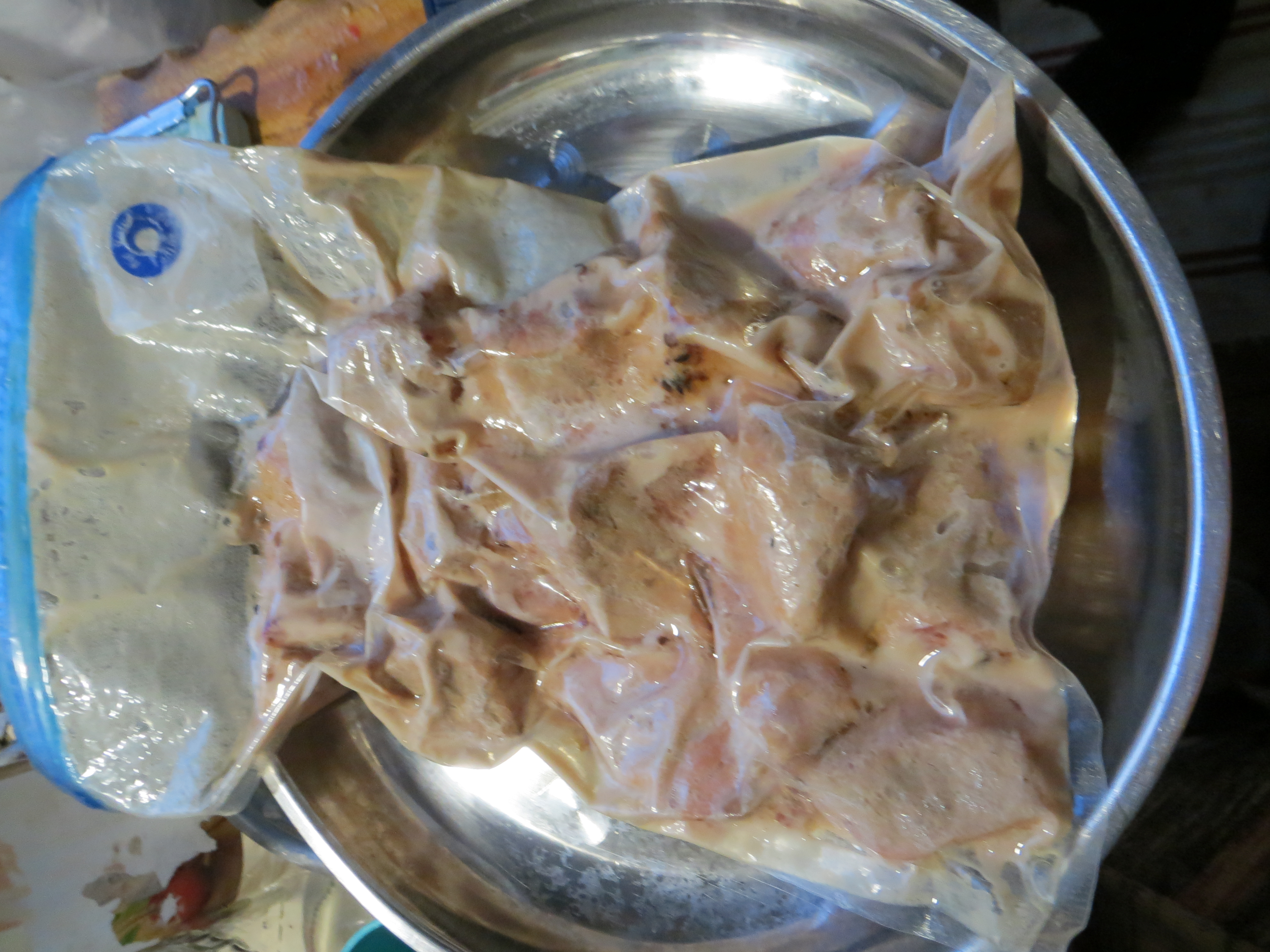 Приготовление заняло совсем немного времени и как только с мяса перестало капать, полуготовый шашлык был переложен в свой же маринад, а дома мы его достали, переложили в пакет для сувида и поставили на режим 65 градусов на 1 час.