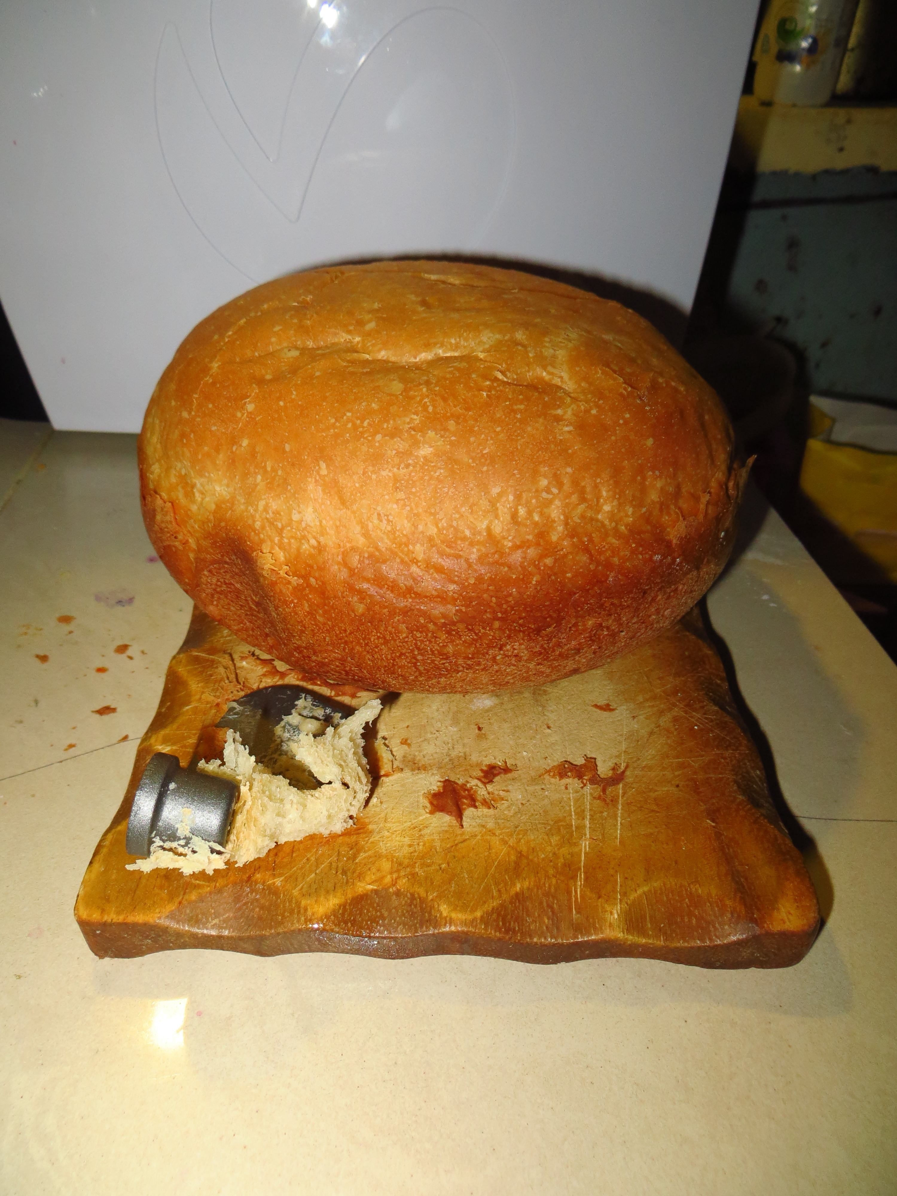 В чашу помещаем сухое молоко, яичный порошок, теплую воду. Муку просеиваем. Сверху на муку дрожжи. И ставим на режим хлеб 750г. Через три часа достаем готовый хлеб. Очень удобно хлеб так ставить на ночь. Утром достаешь готовый хлебушек к завтраку.