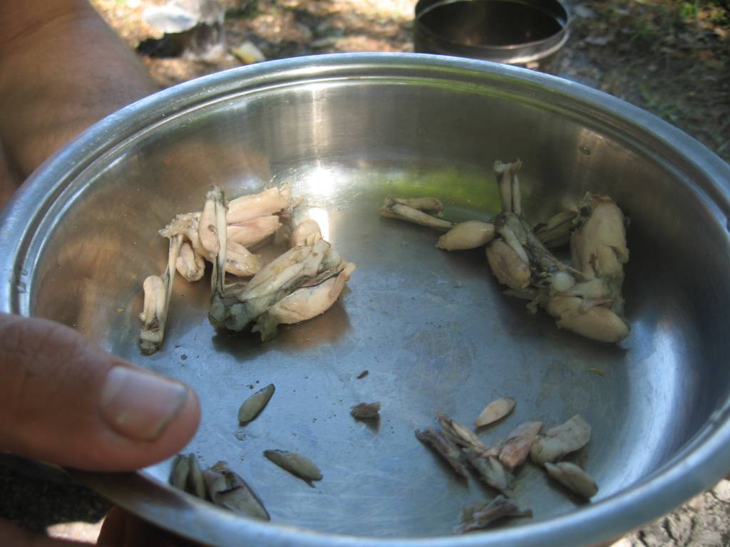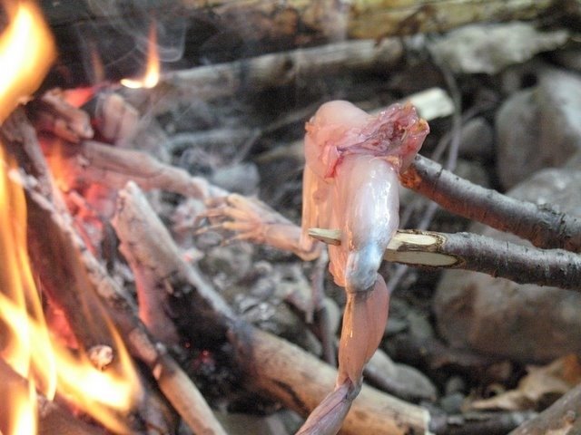 Есть минимум два способа готовки лягушачьих лапок на природе.