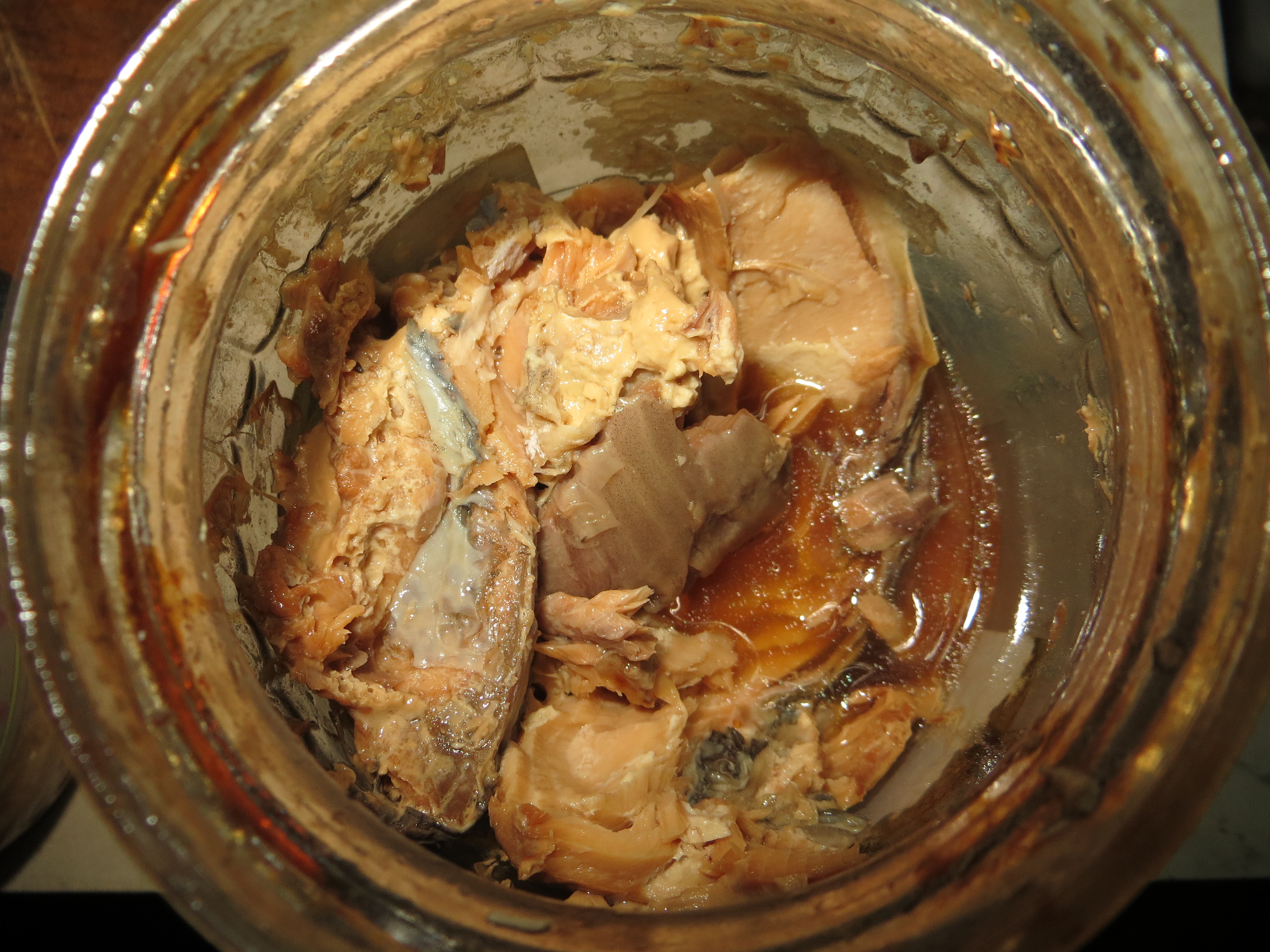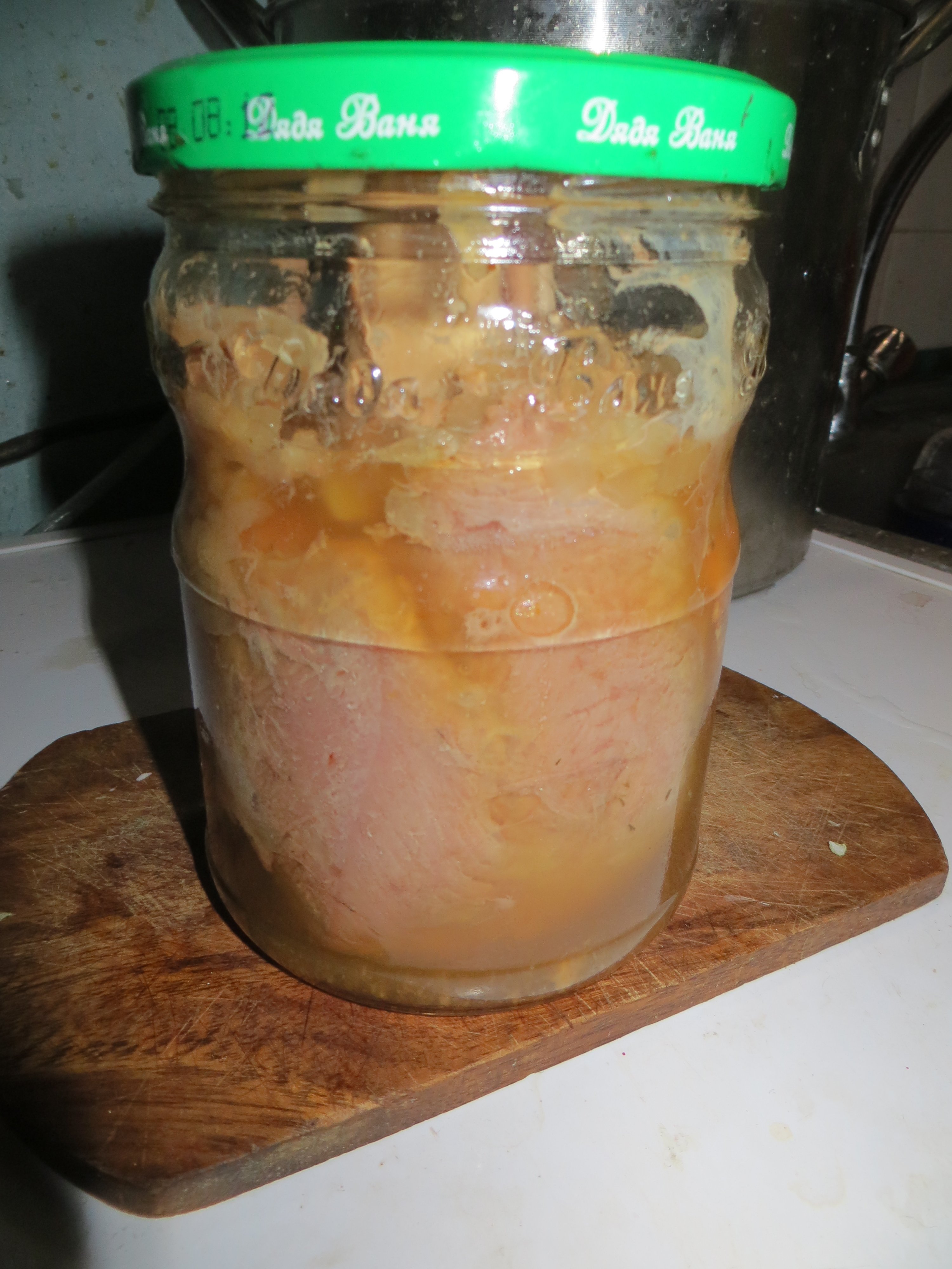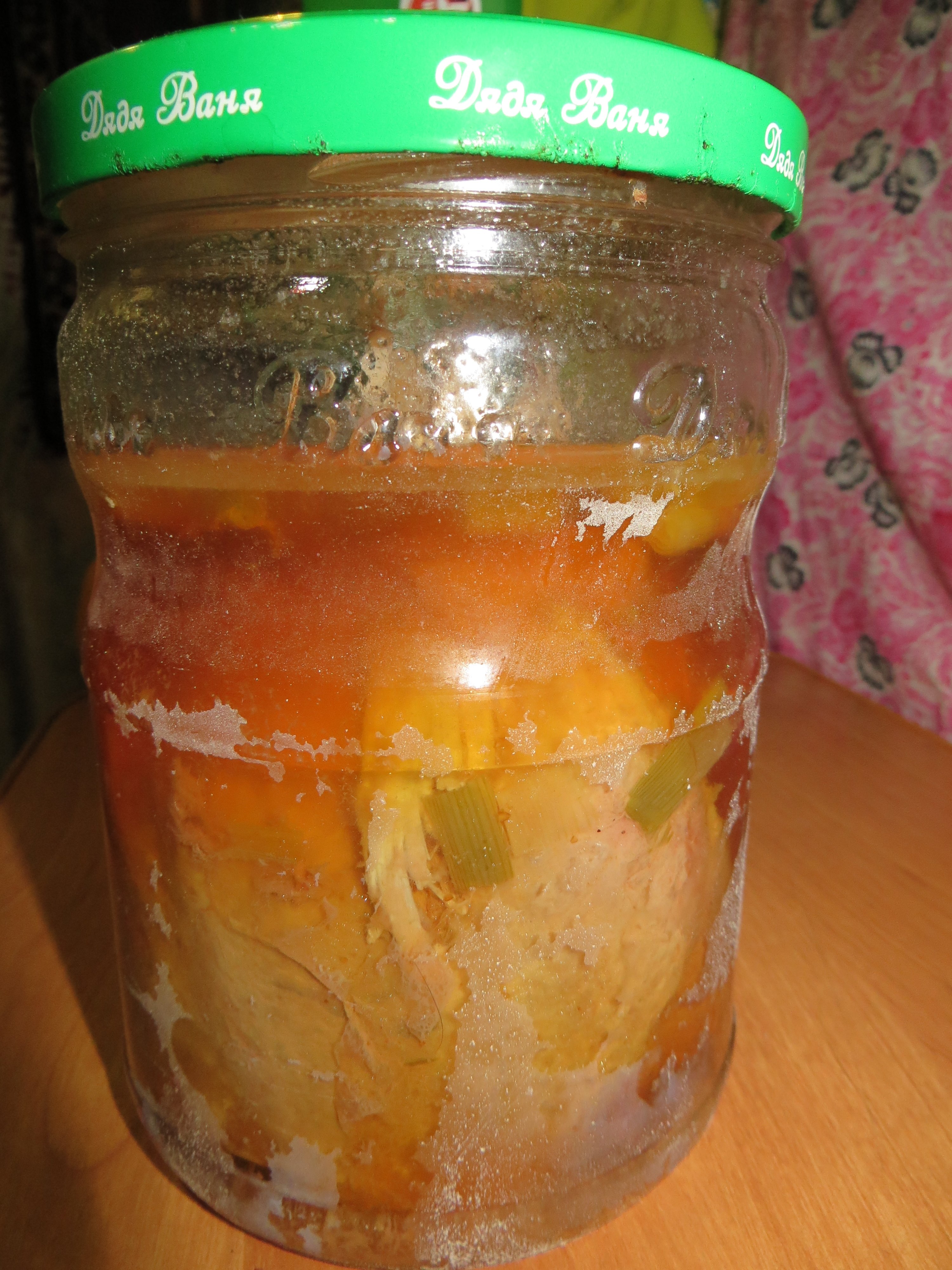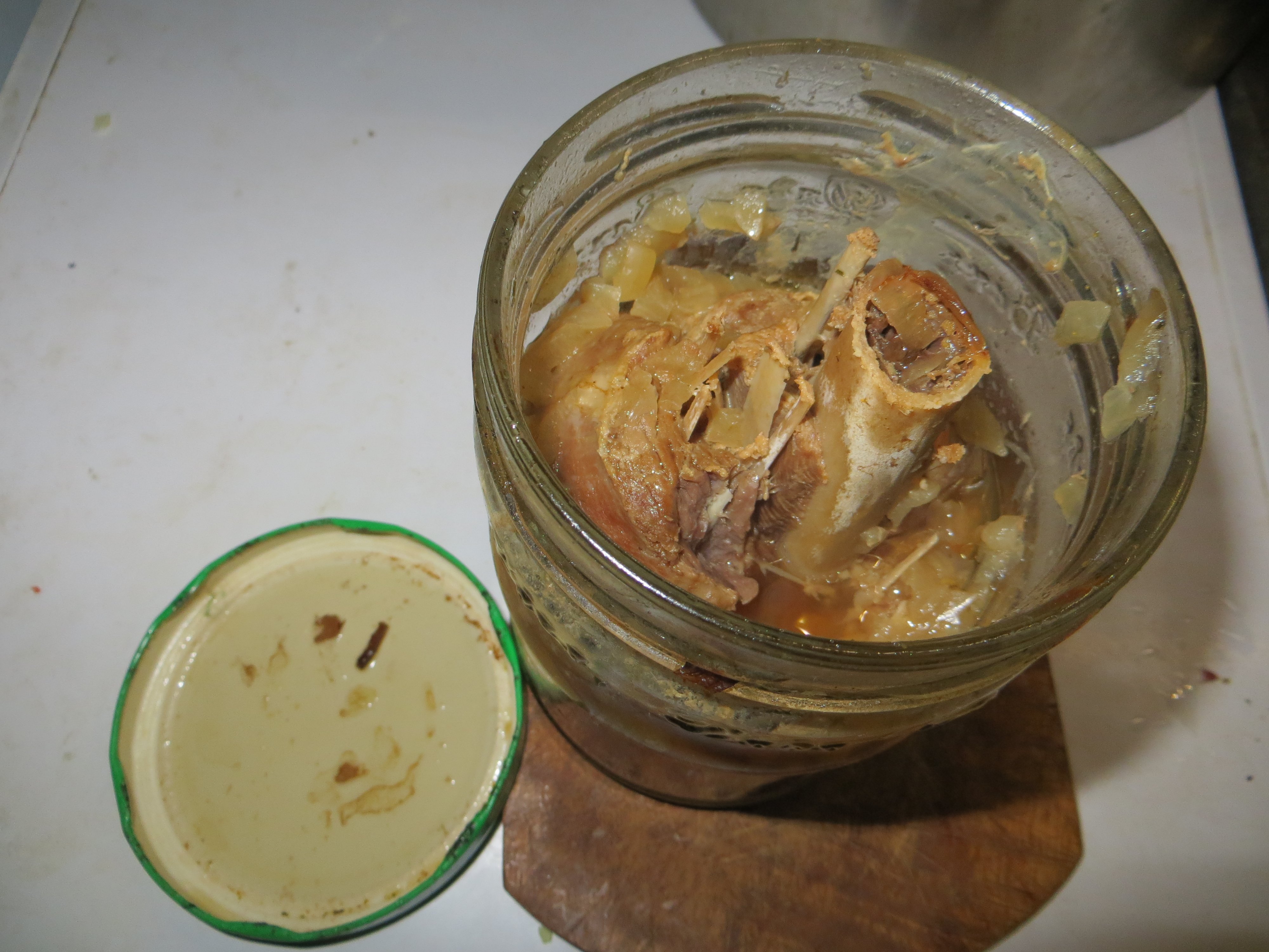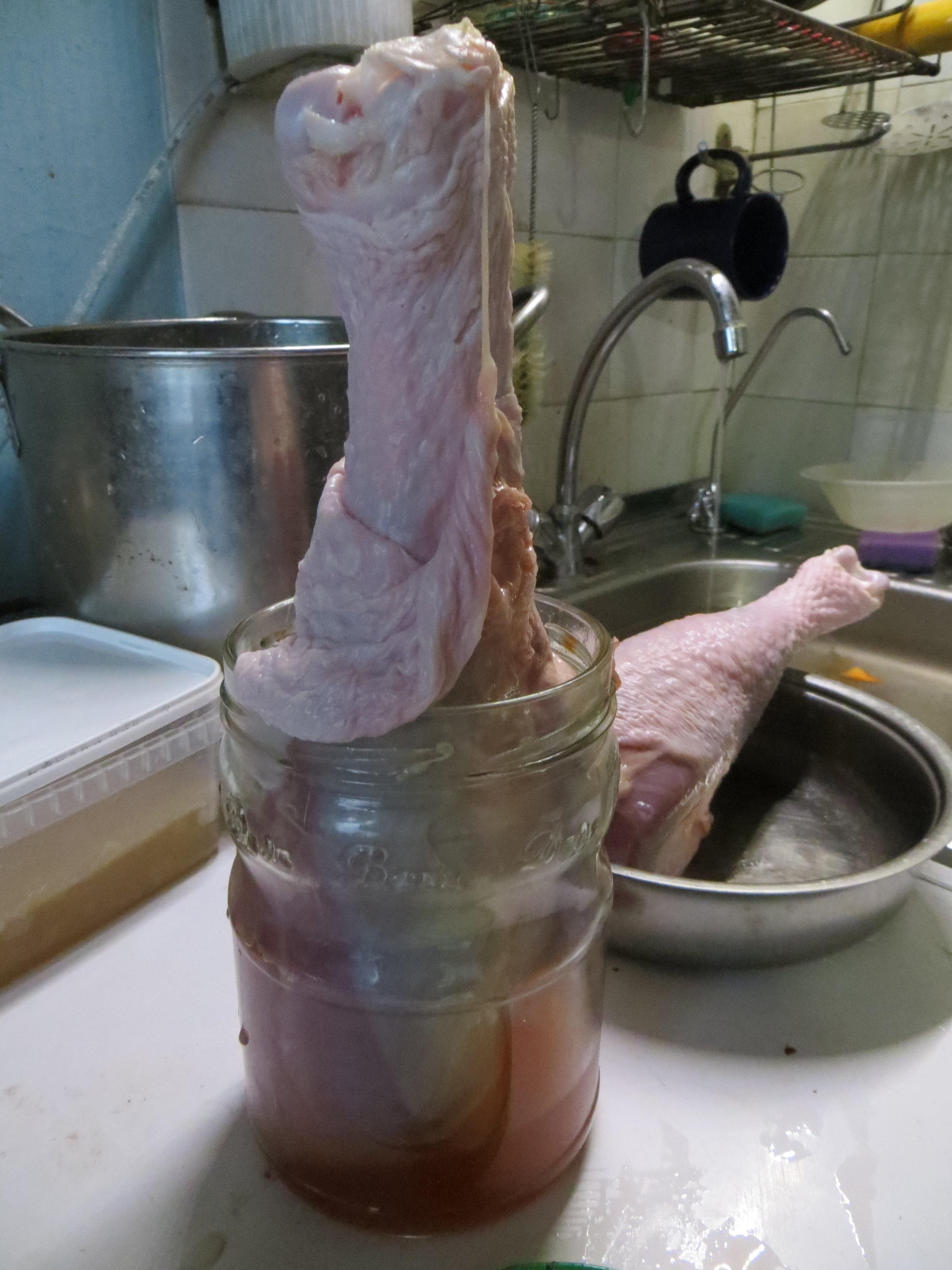 Индюконога была достата из морозилки, растаяна и засунута в банку.