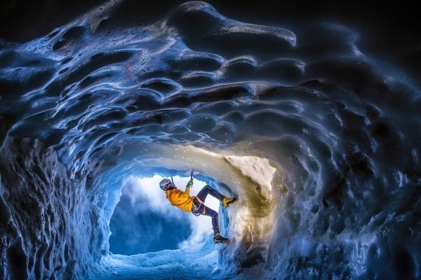 Пугающий опыт исследования ледяной пещеры на северной стороне альпийской вершины на высоте 3800 м над уровнем моря трудно описать словами. Особенно летом, когда лед тает, уступая место совершенно новым образованиям. Вам нужно оставаться сосредоточенным, быть внимательным к каждому даже самому маленькому движению и полностью посвятить себя этому занятию. Награда: изумительный опыт проникновения во что-то чистое и поистине уникальное. (Kamil Tamiola)