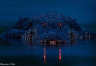 У крупных аллигаторов глаза отсвечивают красным цветом, по этому признаку их можно обнаружить ночью.