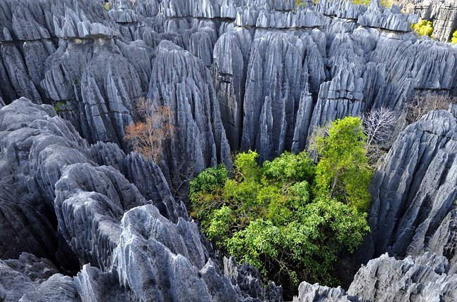Здесь расположен так называемый "Каменный лес", который образовался в результате эрозии известковых пород - вместо обычных гор здесь взмывает вверх частокол острых каменных пиков. Среди остроконечных скал пробиваются редкие (в обоих смыслах слова) деревья, носятся такие же редкие животные — лемуры — и мелькают не менее редкие птицы. Внизу, у подножия, тоже не заскучаешь: там лесные каньоны, таинственные пещеры и темные воды реки Манамболо.