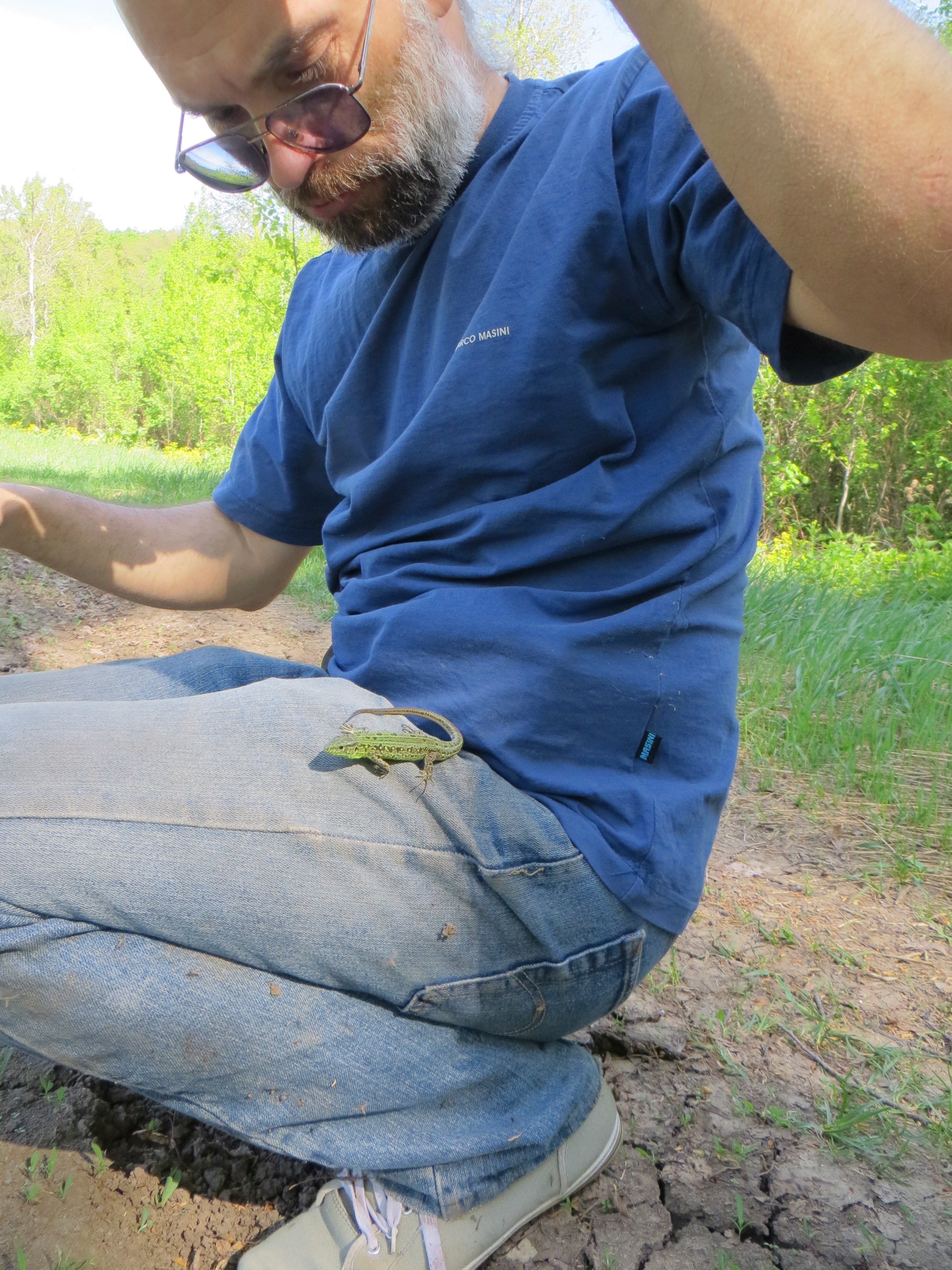 ШУстро спрыгнула с коленей мужа, запрыгнула на мои, пробежалась и растворилась в траве.