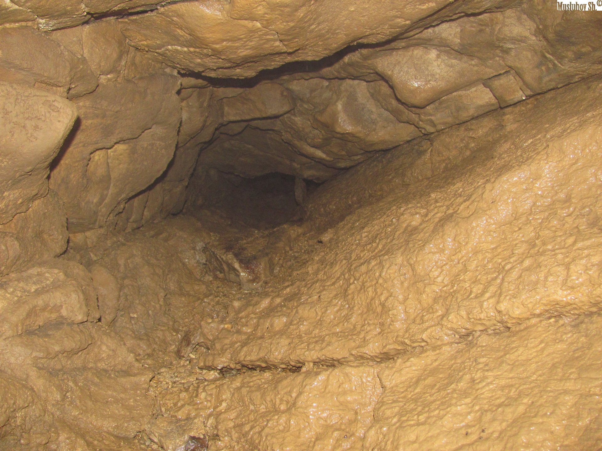 это узкий лаз уходящий куда-то вверх, по нему стекает ручеёк, тут тоже пролезть не удалось...