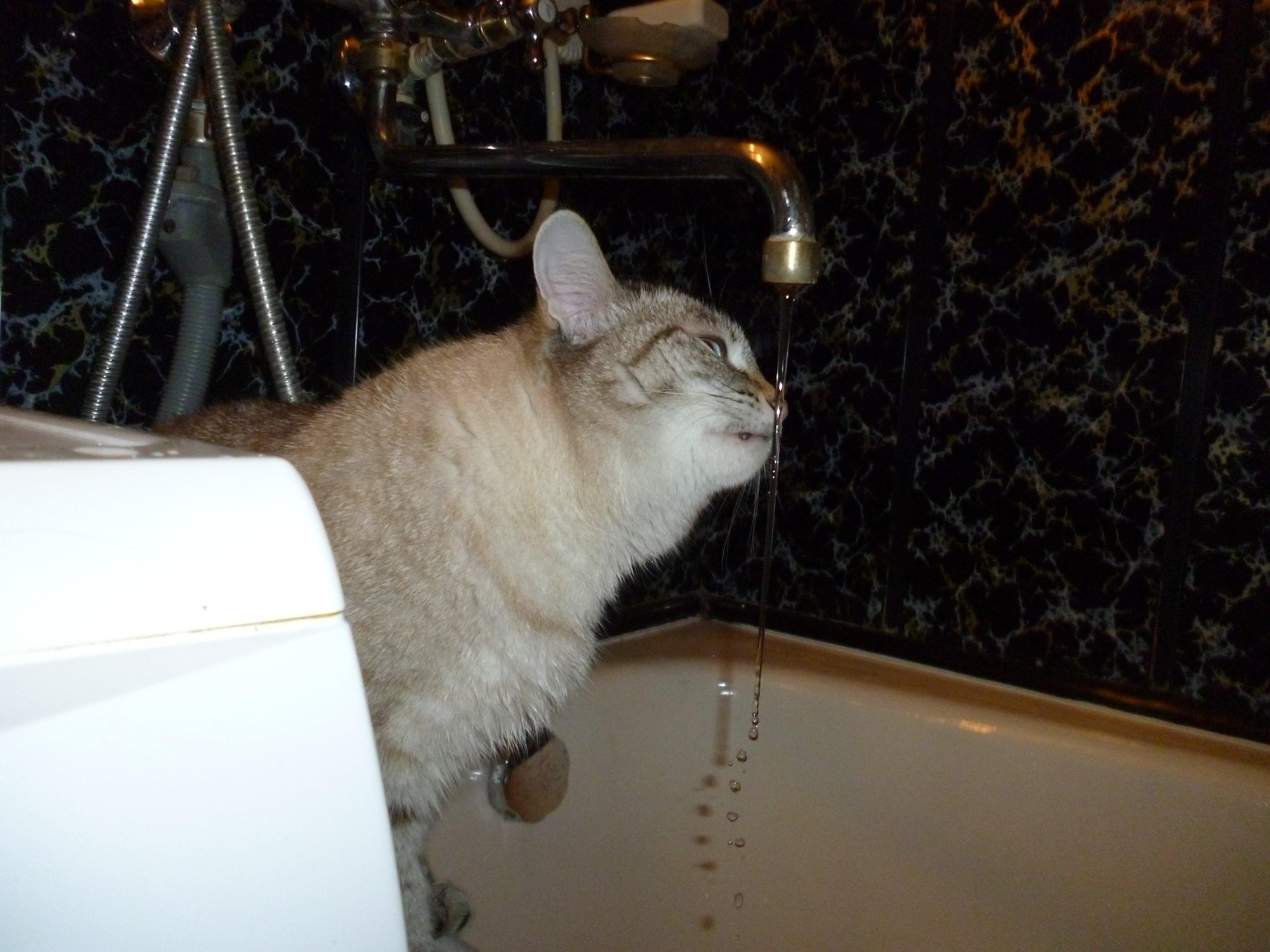 Здравствуй, Оля! Многие кошки любят пить проточную воду. До Мани, у нас 13 лет жила Люся, она то же пила только из под крана. Маню мне удалось отучить только около года назад, и только по тому, что в нашем гигантском доме на 1000 квартир, иногда отключают воду, и Маня категорически не понимает, почему её морют жаждой. Из блюдца пить не хотела, ине понимала как это делать. Я её наоборот застукал, как она пила воду, отстаиваемую для поливки цветов. Так приучил пить не из под крана.