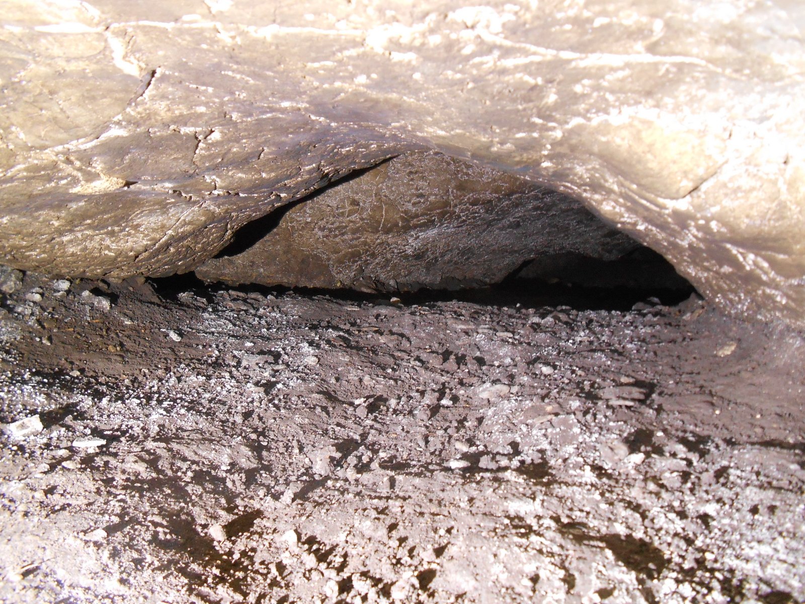 Позднее мы подкопали его немного чтобы протиснуться дальше... хотя пролаз был не из лёгких: всё-же нам удалось ПРОЛЕЗТЬ НАСКВОЗЬ через эту пещеру. Теперь там можно войти в одну Дырку, а вылезти в другой хотя высота хода всего см 25-30 получилось, но если голову держать горизонтально на боку и ступни тоже боком (не задирая пятки к верху" то проползти можно, что мы и сделали