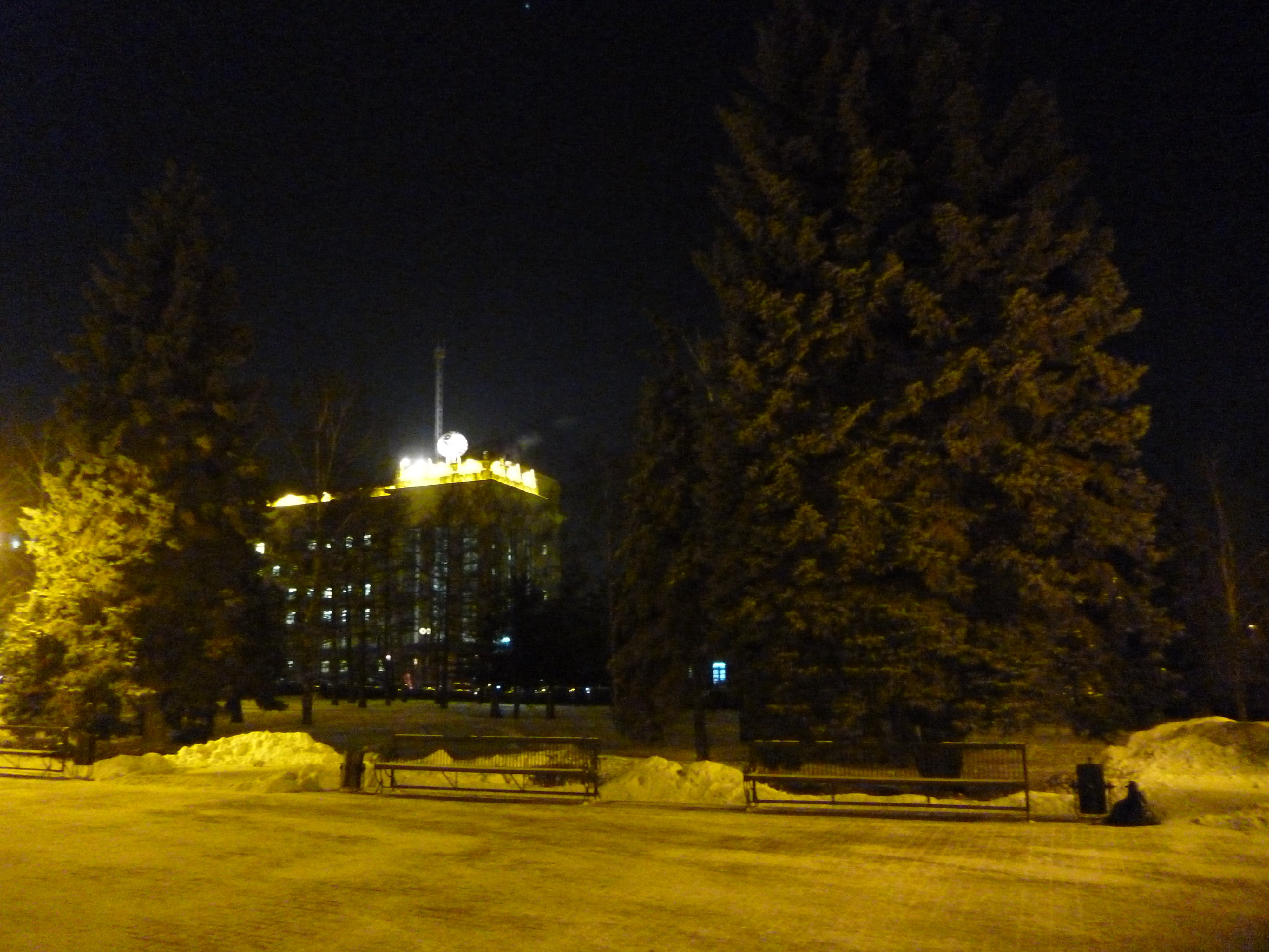 А это, между ёлок, видно здание моей работы. Всё, пришёл. За 45 минут насладился городскими парками, теперь работать, работать, работать...