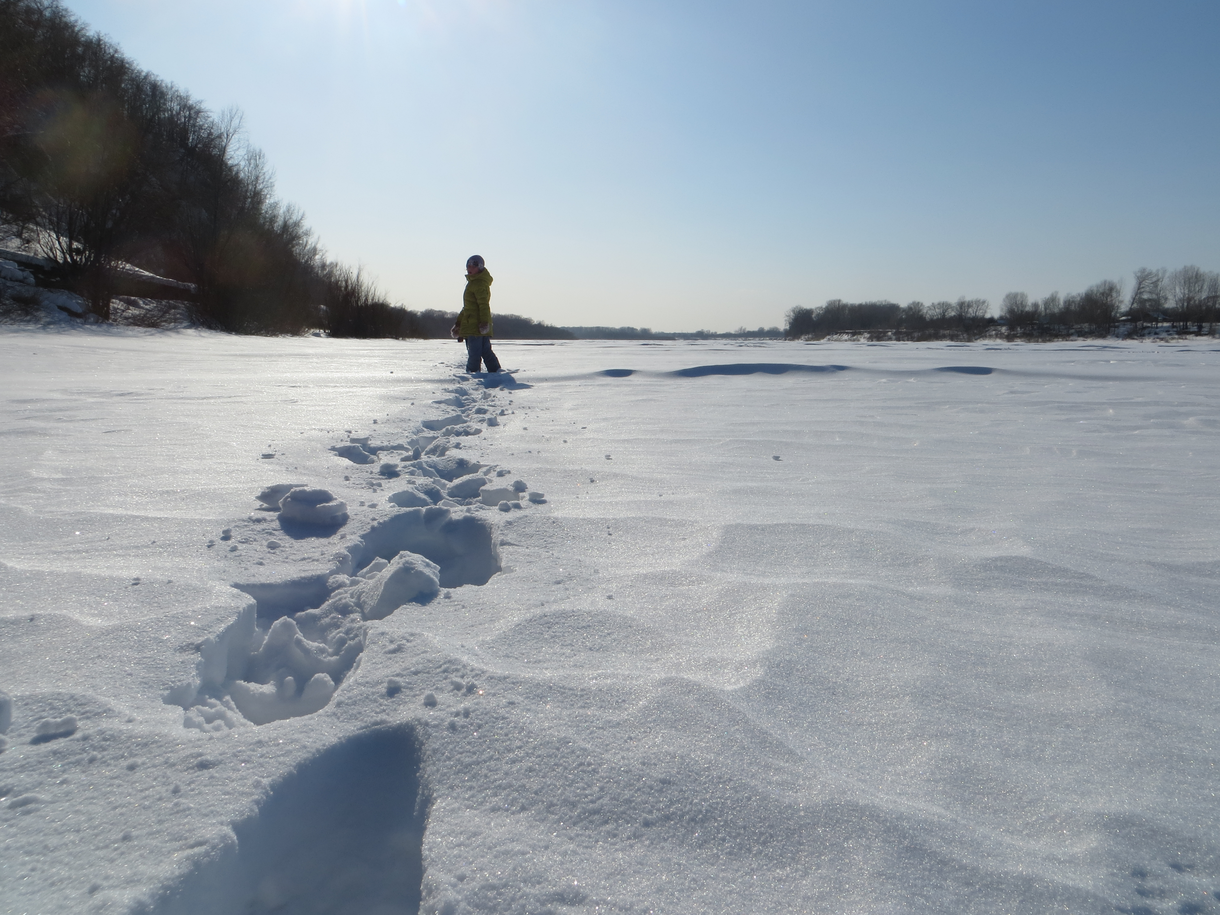 Солнце печет, снег под ногами рассыпается, идти тяжело, как по сыпучим пескам.
