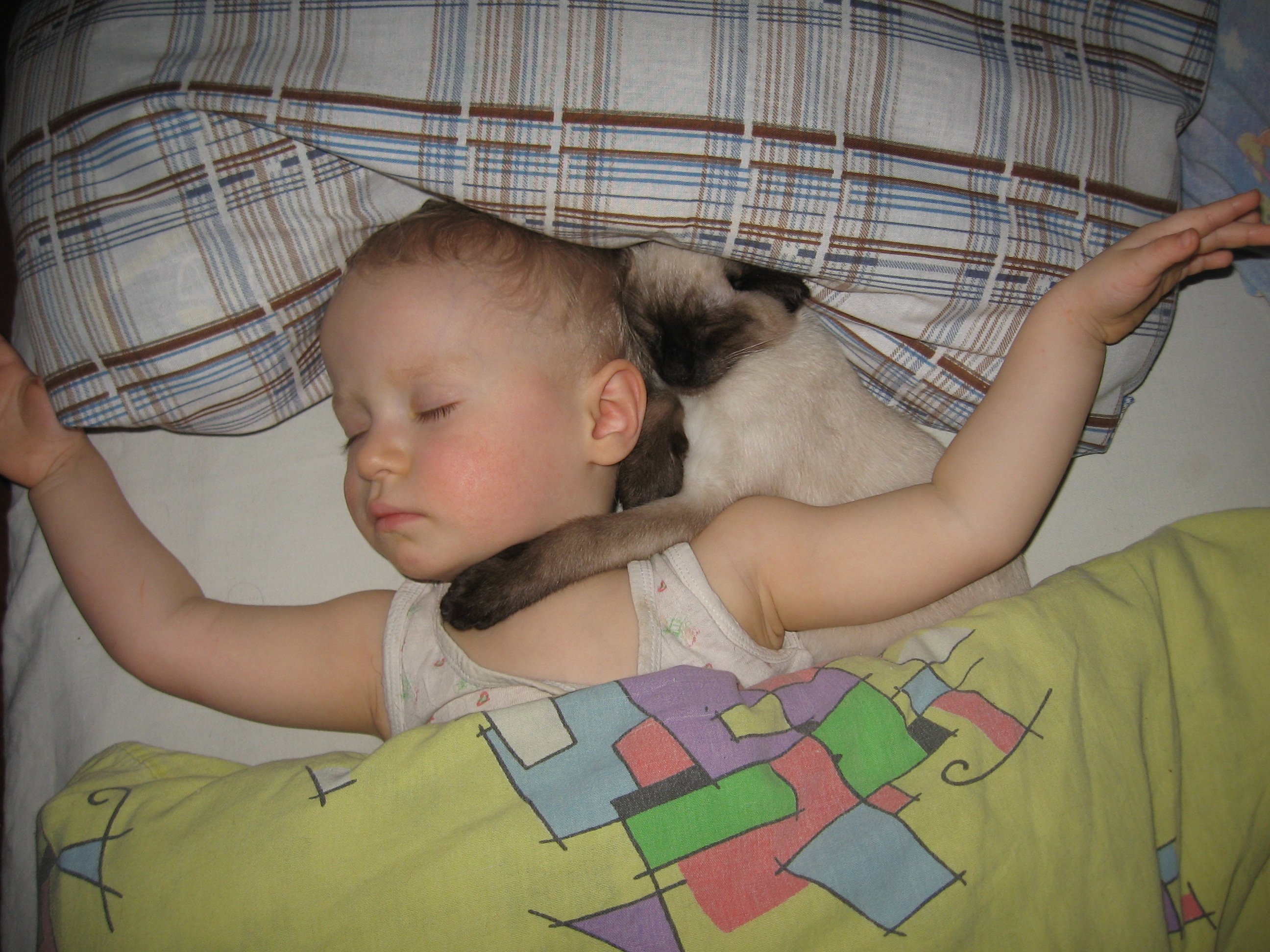 спит в обнимку малышня