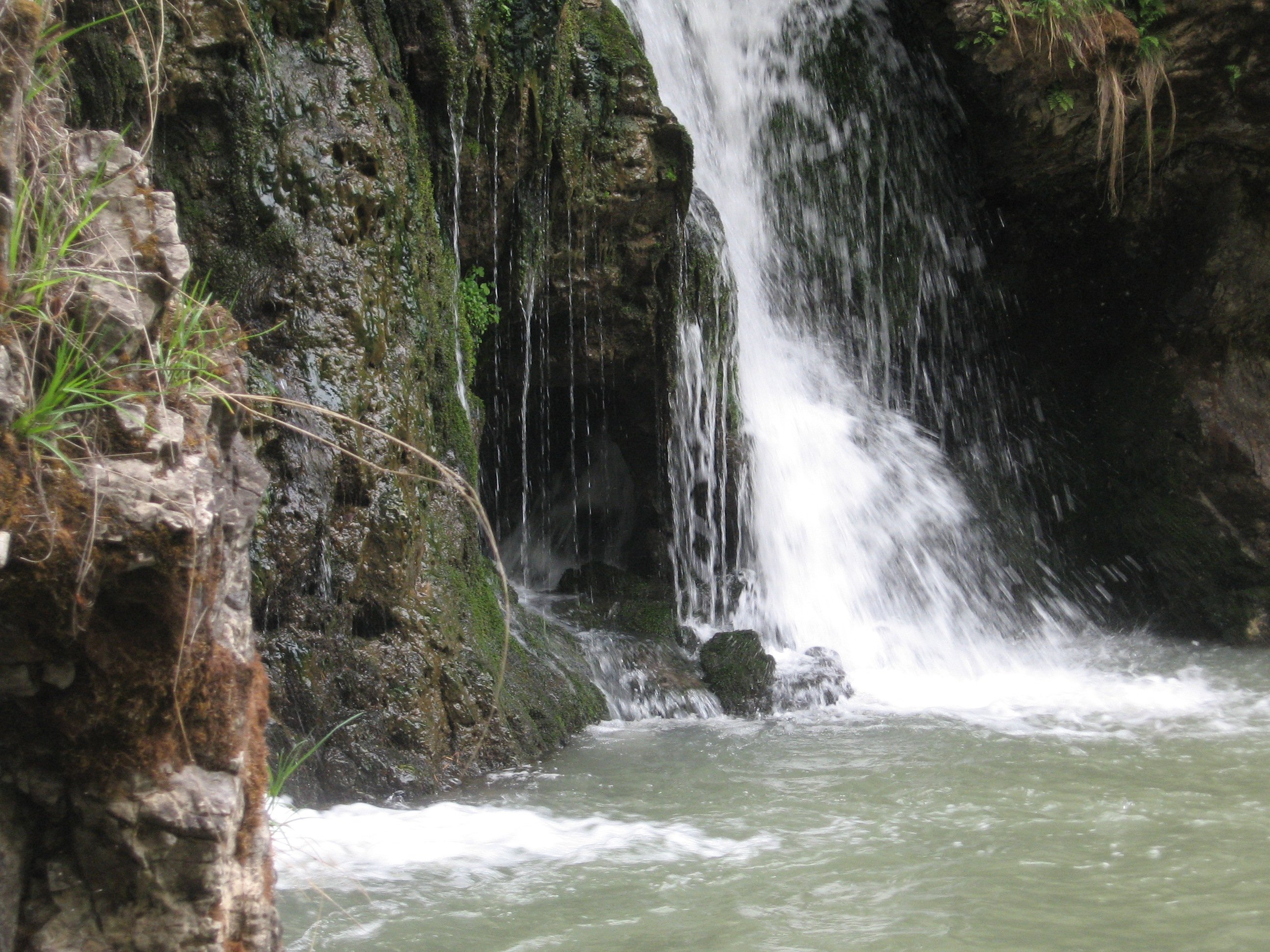 Если присмотреться, то видно как правя струя расщепляется на два рукава, один из которых бьет внутрь камня
