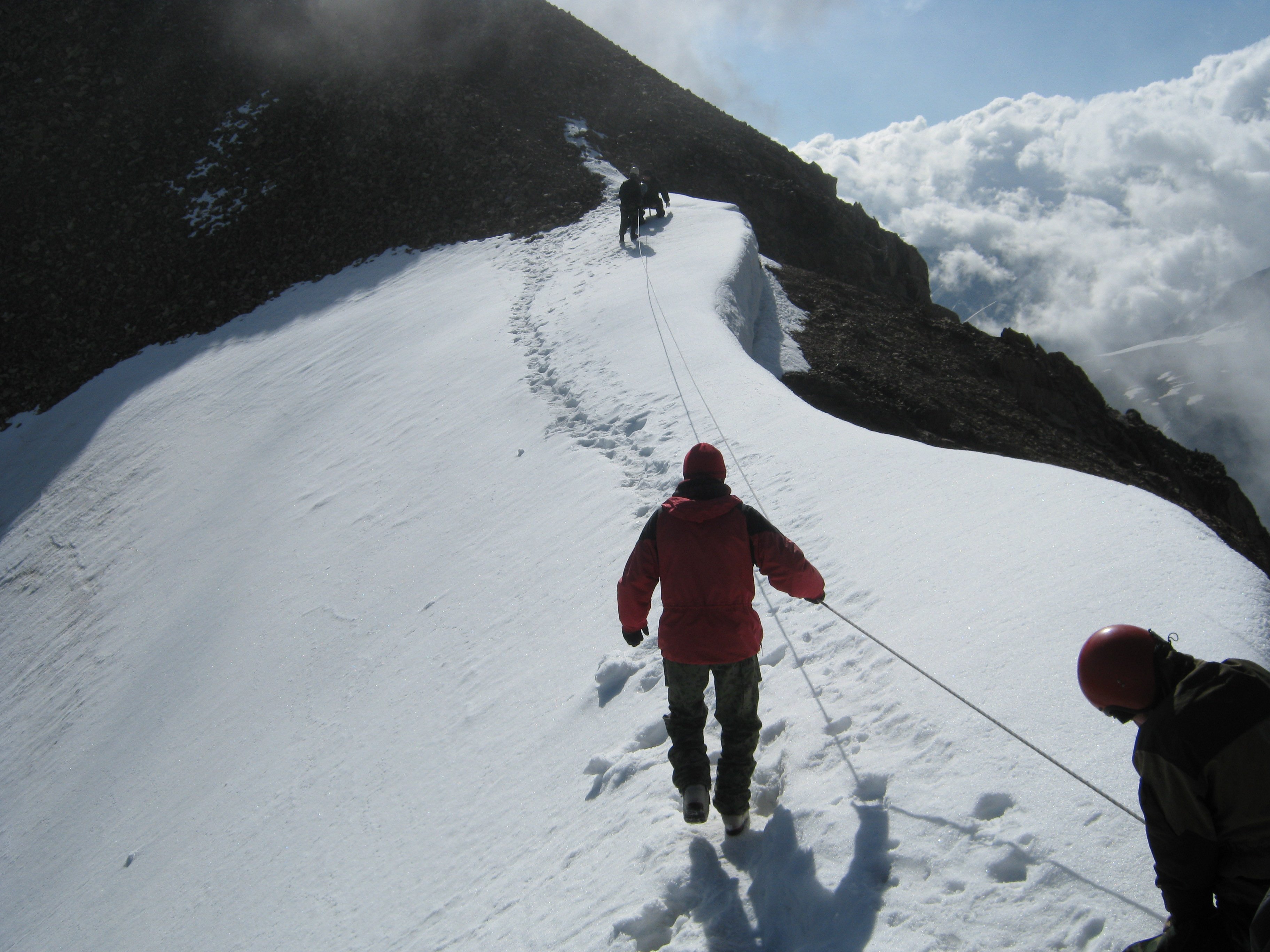 • Да, конечно: Мы пошли в техдневный поход на голубое озеро, к счастью погода это позволяла. От лагеря идти туда часа 4, вверх по каменистой тропе вдоль горной реки, потом немного по широкому и просторному леднику. Ледник был темноватый изза мелких камушков, и по нему кое-где текли голубые ручьи. В обед мы добрались до озера, поставили палатки и пошли с инструктором на ледовую тренировку. На следующее день, в 4 утра, когда было уже достаточно светло, мы выдвинулись из пром.лагеря чтобы совершить первое восхождение. Когда добрались до вершины, написали записку след. группе о составе участников, немного перекусили. С вершины можно было видеть как просыпаются горы: часам к 8 солнце начало пригревать и мы видели, как со всех сторон недалеко под нами начинают подниматься "будущие тучки". Было очень необычно, что они летят вверх, а не вдаль. Когда спускались, солнце уже было достаточно высоко и кое-где уже появились ручьи. В лагерь вернулись в 11, довольные, немного уставшие. На следующий день мы совершили еще одно восхождение на перевал. Еще через день покинули голубое озеро.