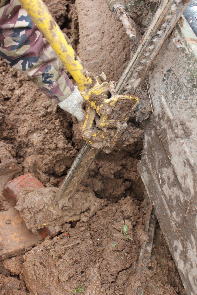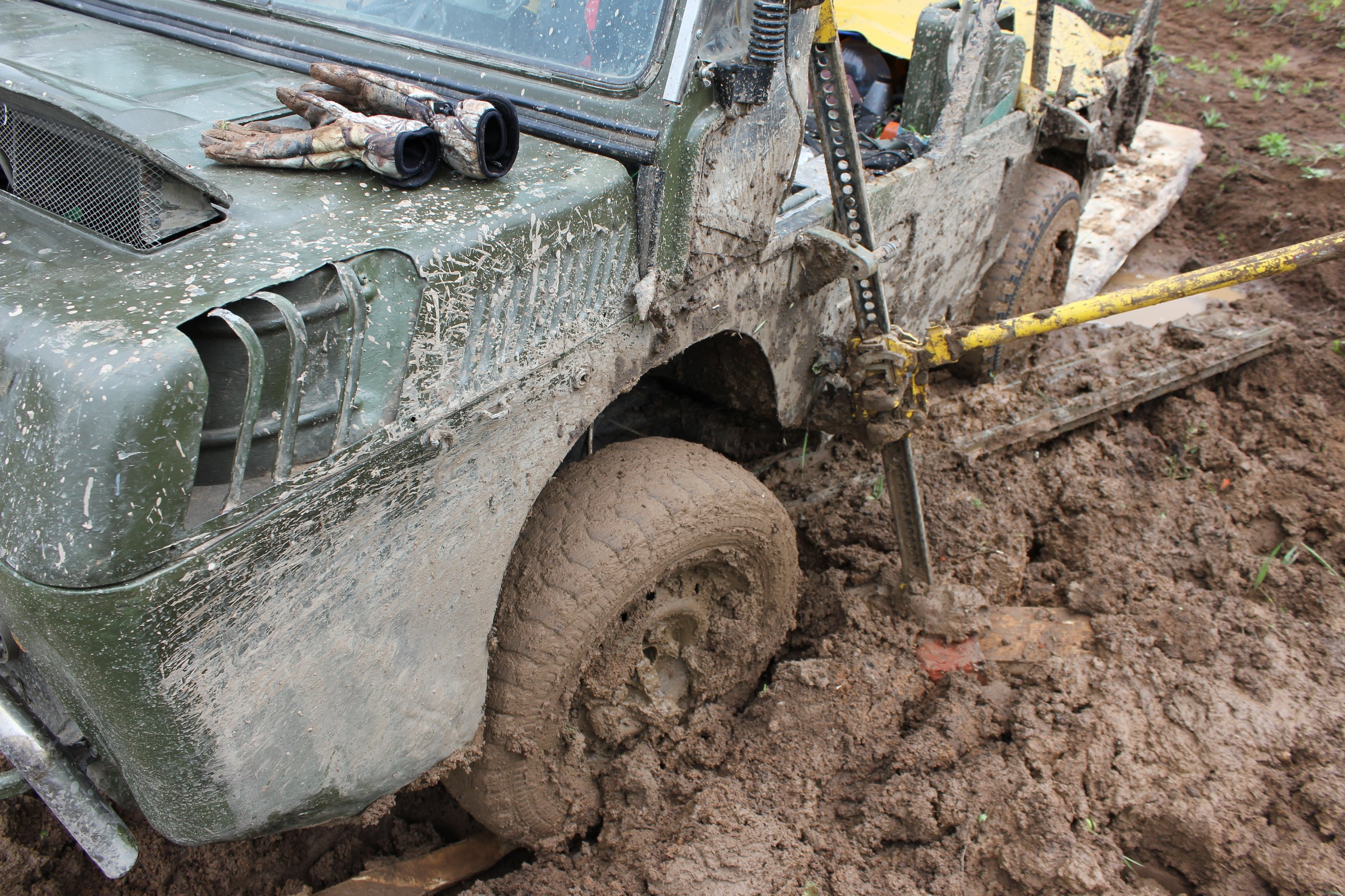 хайджек стоит на досках и кирпичах. к моменту подъема машины досок и части кирпичей уже не видно. под ноги тоже приходится класть кирпичи, иначе они тонут в глине и вытаскивать их тяжело.