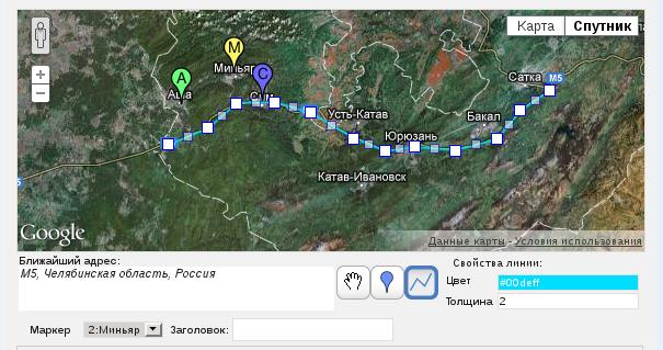 Там же можно узнать как вставить несколько маркеров на карту и нарисовать произвольный контур (например предполагаемый маршрут).