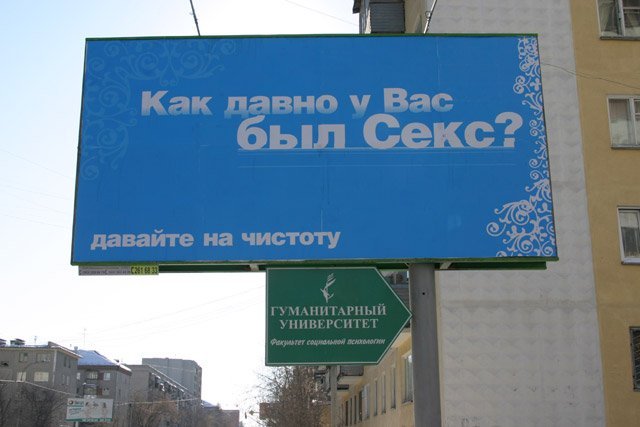 Прохожу мимо Гуманитарного университета и недалеко от здания порадовал меня плакат с такой рекламно-указательной композицией.