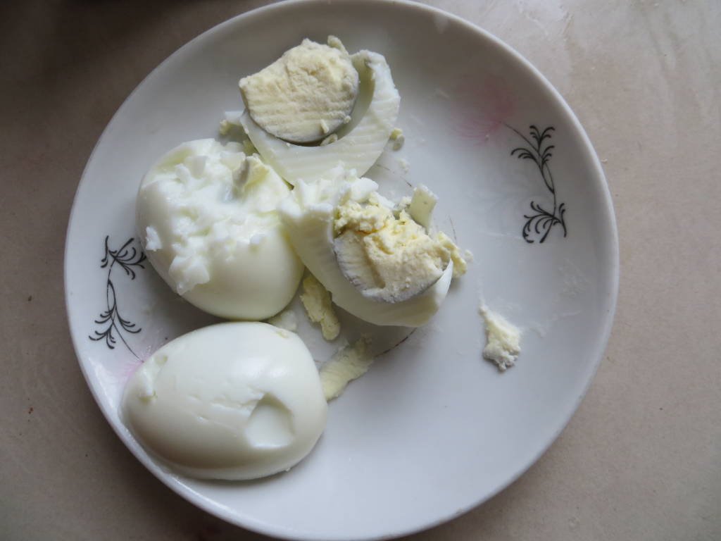 Вот так вот почистила яички для салата, оставила на столе, вышла на пару минут. Прихожу и вижу: Кот на стол примостился попой, мордаха вся в желтках. Ах ты, морда мохнатая! Нет бы чтоб одно яйцо стырить и слопать, он их все понадкусывал!